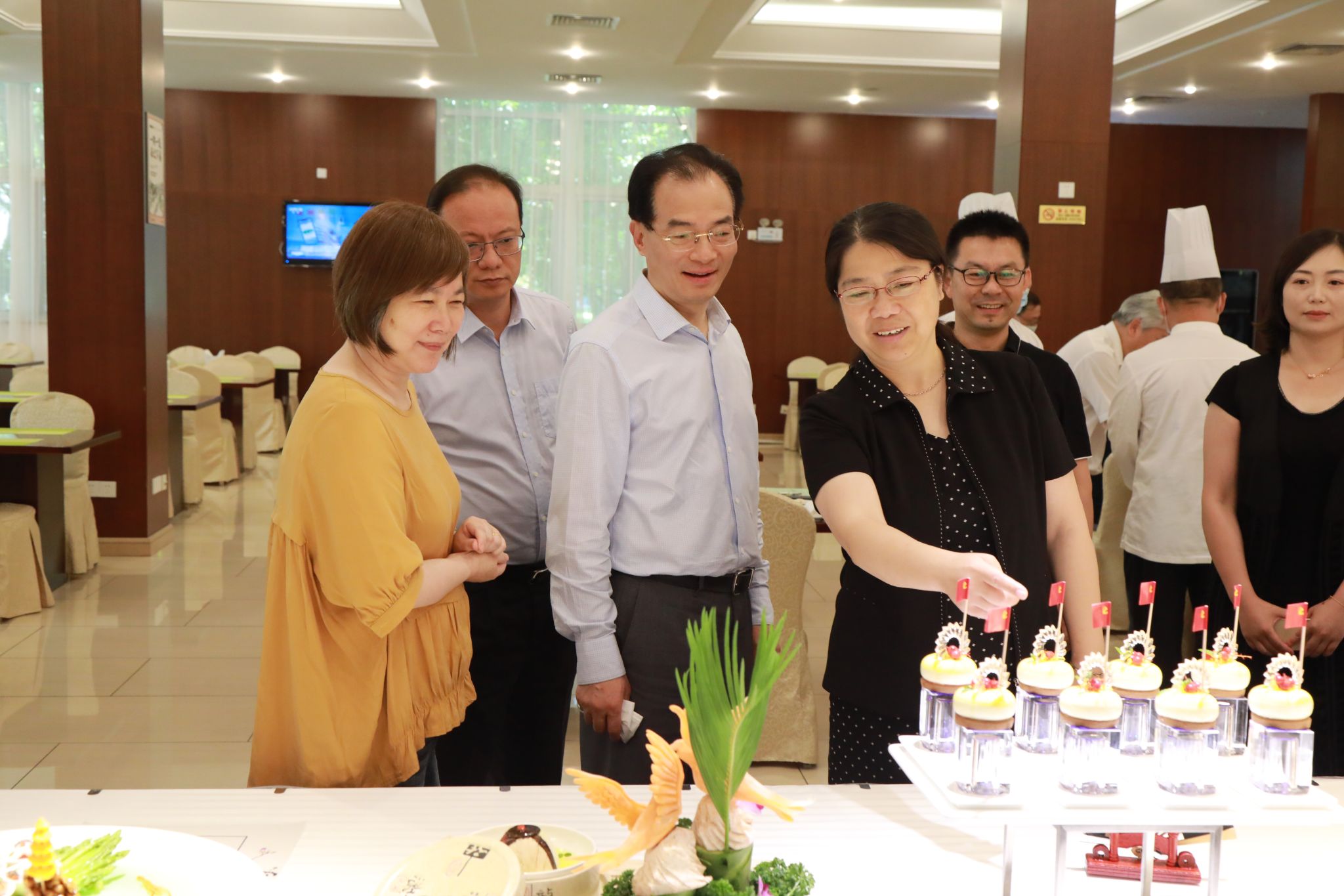 6月22日中午,“服务明星餐饮技能展示”和“风味美食制作品尝”为AG百家乐“美食节”活动拉开了序幕。AG百家乐餐饮服务团队经过多日的精心准备,以最好的餐饮技术水平和最好的服务精神状态为广大教职工展示了一场具有红色特点的“美食秀”,大家在品尝、欣赏的同时,充分体验了地方风味美食和红色文化有机融合。在副AG百家乐长朱亮高的陪同下,市机管局副局长谢雪莹一行亲临我AG百家乐“美食节”活动现场,对“美食节”活动进行了指导,并对活动给予了高度肯定。他们表示,党校“美食节”内容丰富、举措实在,讲大局、有品位,真正体现了“美食节”的精神。