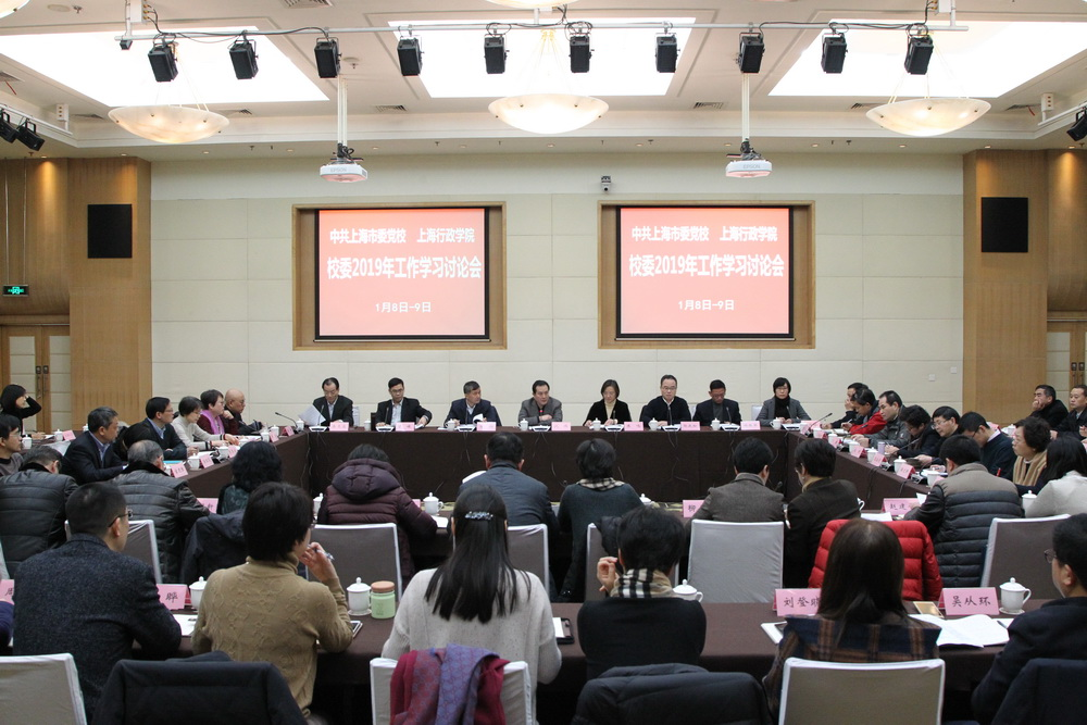 1月8日至9日,我校举行校委2019年工作学习讨论会,深入学习贯彻习近平新时代中国特色社会主义思想和党的十九大精神,重点围绕贯彻落实习近平总书记在上海的重要讲话精神,结合落实2018-2022年全国、上海干部教育培训规划要求以及市委市政府关于党校、行政学院重要决策部署,研究谋划2019年工作思路和创新举措。常务副校长沈炜主持会议并讲话。副校长李渤、郭庆松、曾峻、谢根华、朱亮高,教育长梅丽红出席会议并讲话,市纪委派驻纪检组组长朱鸣、副巡视员、机关党委专职副书记董凌白出席会议,各部门主要负责人参会。