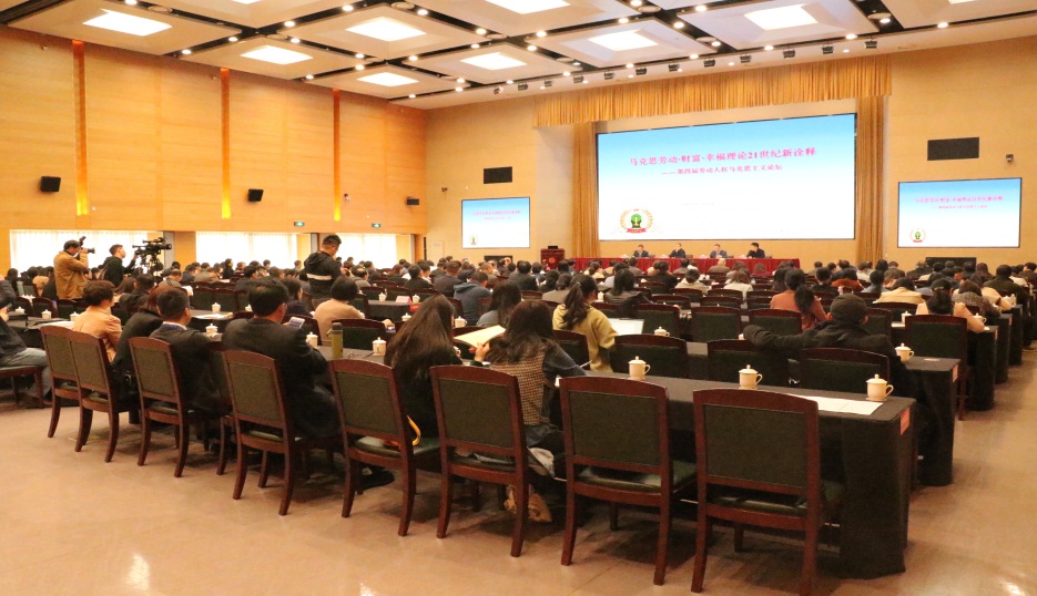 张志丹代表论坛主办方介绍了论坛的筹备情况。本次论坛自公开征文以来,筹备工作前后历时近一年。收到应征论文在数量和质量、研究视域的宽度和深度方面,都大大超过以往三届。组委会共征集到100多篇论文,从中筛选出96篇论文汇集成会议论文集。应征作者的多样性特征亦十分明显,有著名的专家,也有年轻学者,学科涉及马克思主义理论、哲学、政治学、经济学、法学、伦理学、教育学、管理学、社会学、文化学等10多个学科领域。这表明,劳动问题研究正在成为一个广受关注的跨学科学术领域。张志丹教授认为,劳动、财富和幸福三者有着密切的关联,我们正是在劳动中创造财富从而获得幸福的。劳动研究对于马克思主义研究的纵深化推进,具有关键作用。