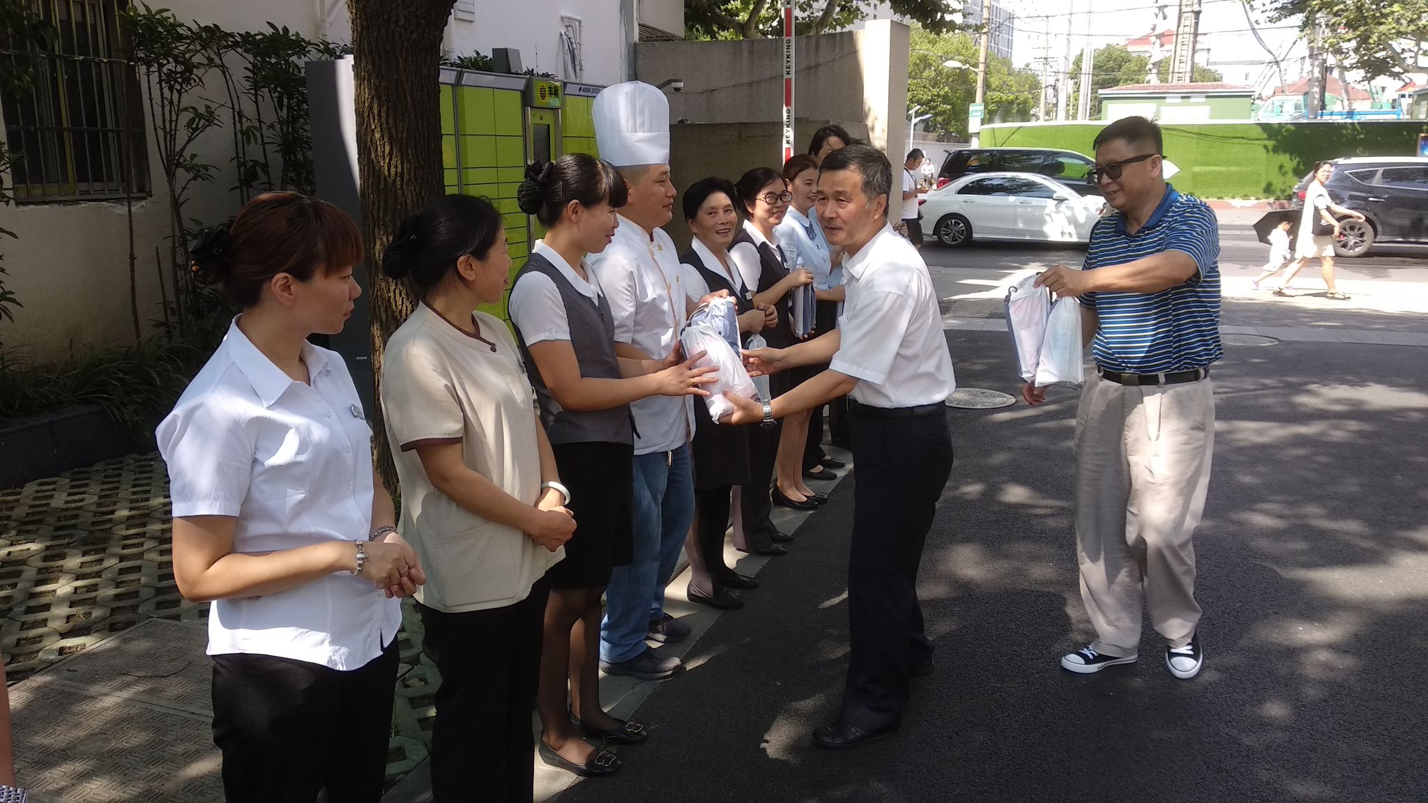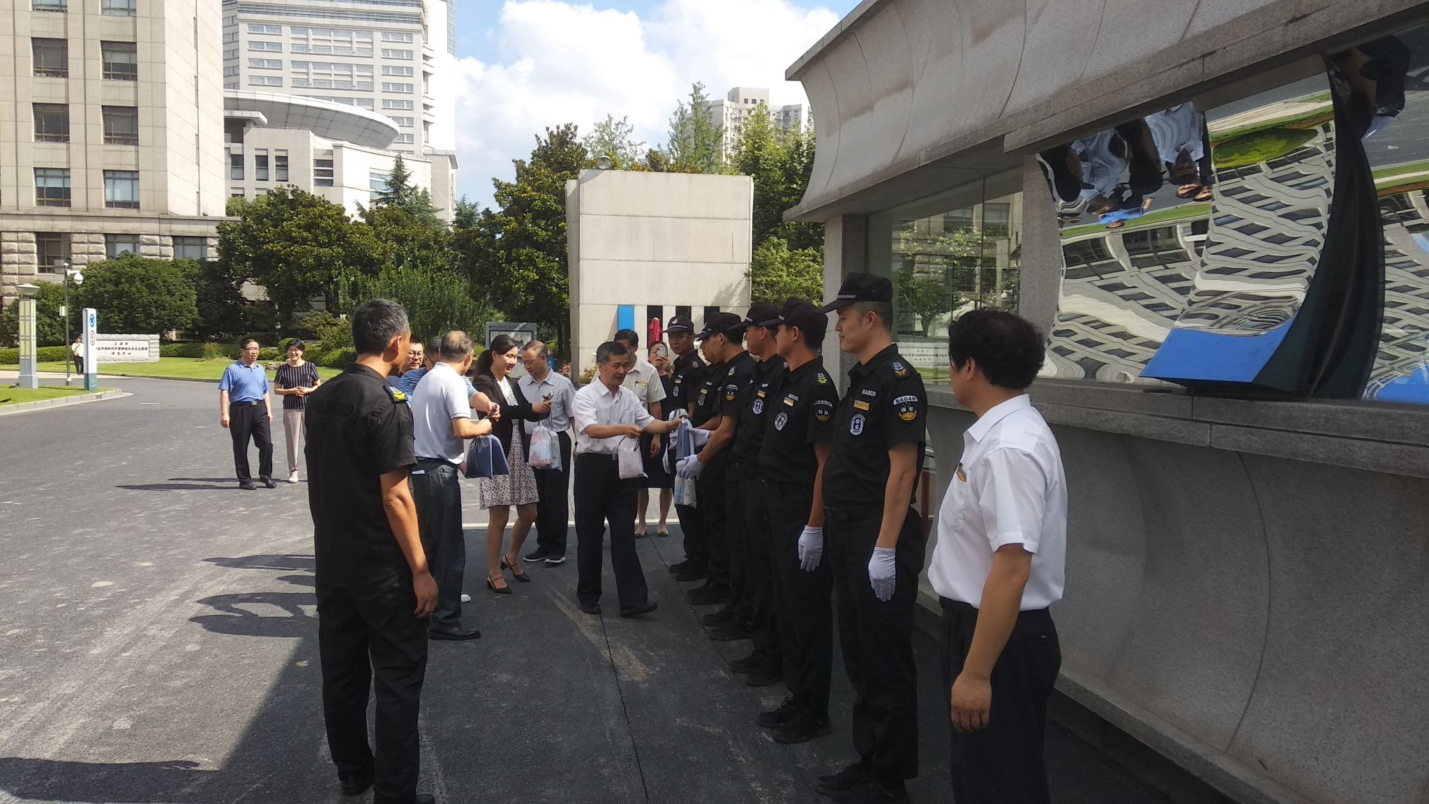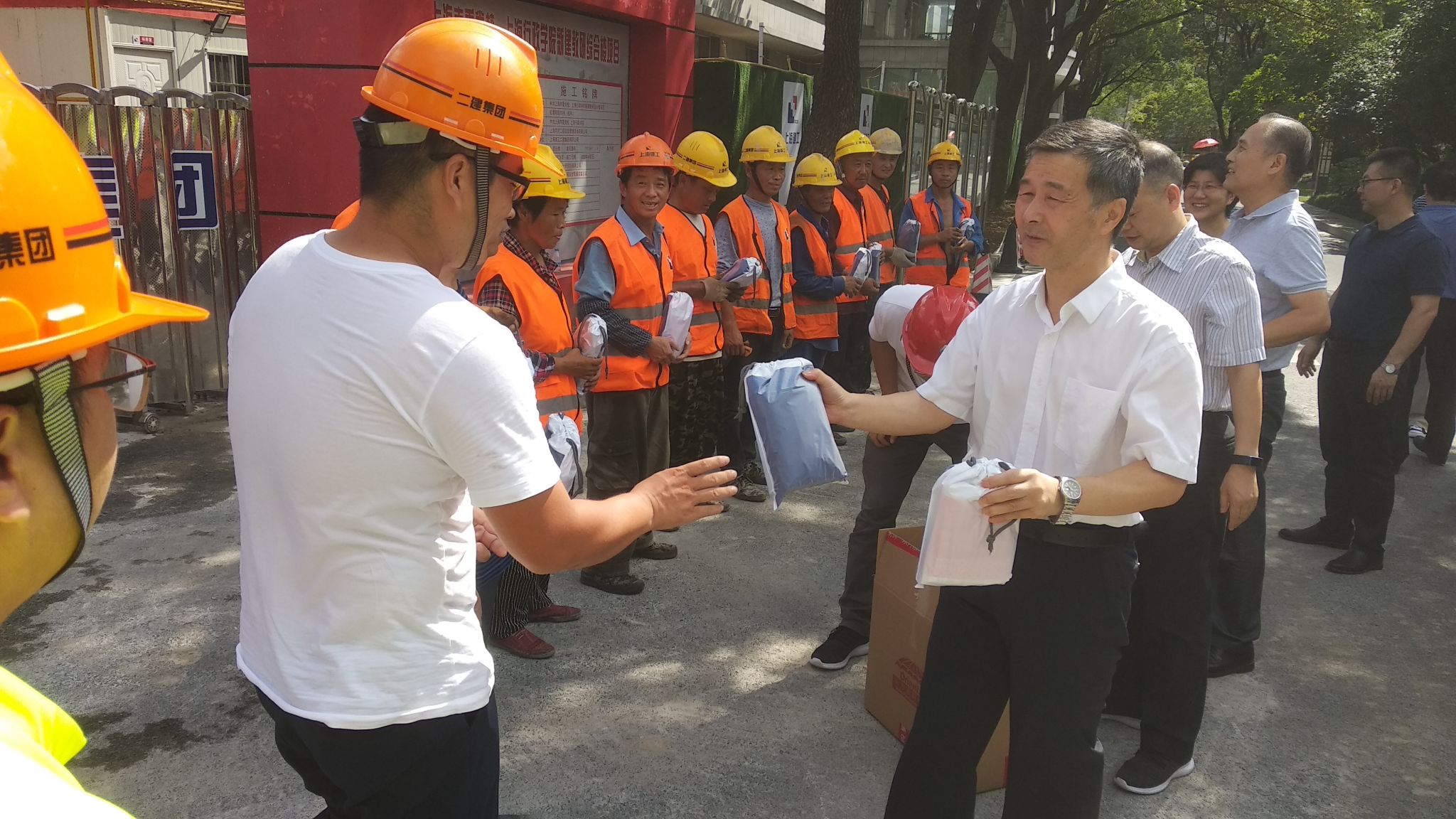 本网讯 近日正值高温酷暑时节,为体现校院对广大职工的关怀,确保职工安全度夏,8月6日,校院组织开展夏季高温送“清凉”活动。副校院长李渤带领办公室、组织人事处、机关党委、工会、后勤保卫处、后勤服务中心等部门负责同志先后走访了收发室、门卫室、新世纪物业、车队、海兴大厦、海泓餐厅及建筑工地等岗位,看望慰问在高温酷暑下坚守在生产一线的广大职工,同时也为梅陇、淀山湖校区送上防暑降温物品。
