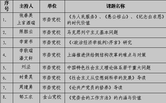 本网讯 近日,上海市委党校2016年度教研咨一体化课程(课题)评审会议举行,副校长曾峻主持会议,教务处、科研处、培训处、调研督查处负责人等近10人与会。