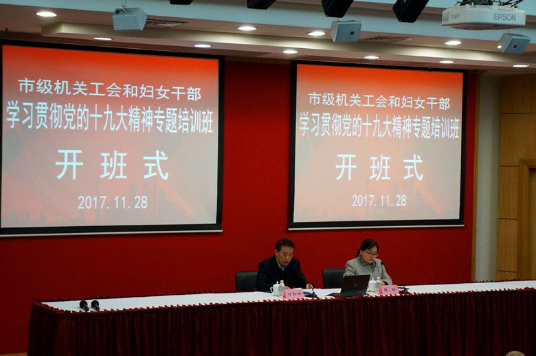 本网讯 11月28日,市级机关工会和妇女干部学习贯彻党的十九大精神专题培训班在我校举办,来自68个市级机关单位的工会主席、妇女主任和劳模共200余人参加了培训。市级机关纪工委书记任勤相作开班动员,市级机关工会副主任陈玲主持开班式。