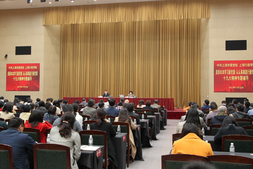 本网讯 11月14日上午,校院举行“原原本本学习新党章 认认真真践行新党章”十九大精神专题辅导报告会,由科研处处长周敬青教授作专题辅导报告。海华101报告厅座无虚席,全校300余名党员参加了报告会。