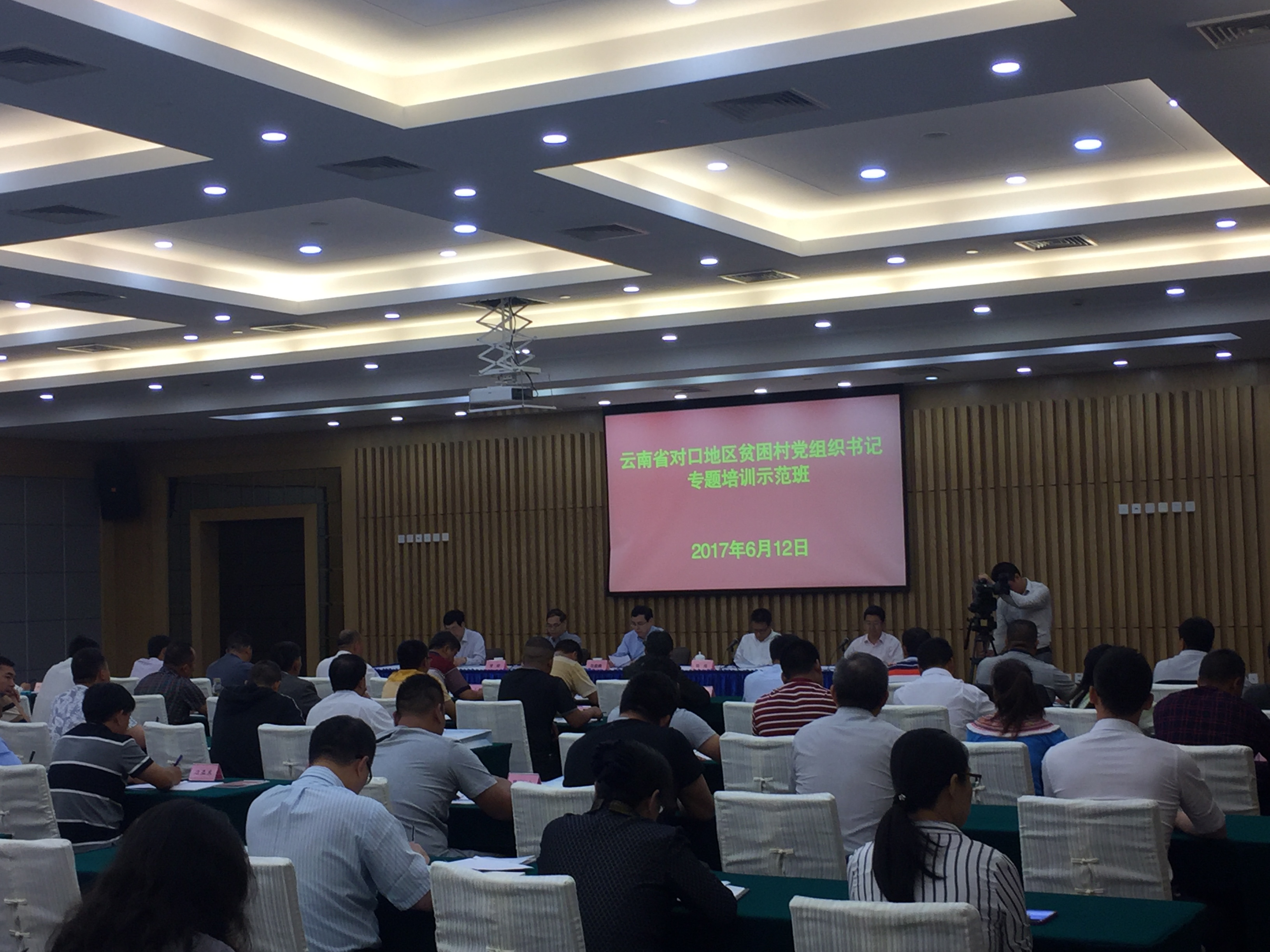 本网讯 6月12日上午,云南省对口地区贫困村党组织书记专题培训示范班开班式在海兴大厦三楼多功能厅顺利举行。上海市委组织部副部长郑健麟、上海市委党校副校长曾峻、云南省扶贫办机关党委专职副书记张庆参加开班式并致辞。上海市合作交流工作党委书记、上海市人民政府合作交流办公室主任姚海主持开班式。上海市合作交流工作党委副书记庞峻出席开班式。
