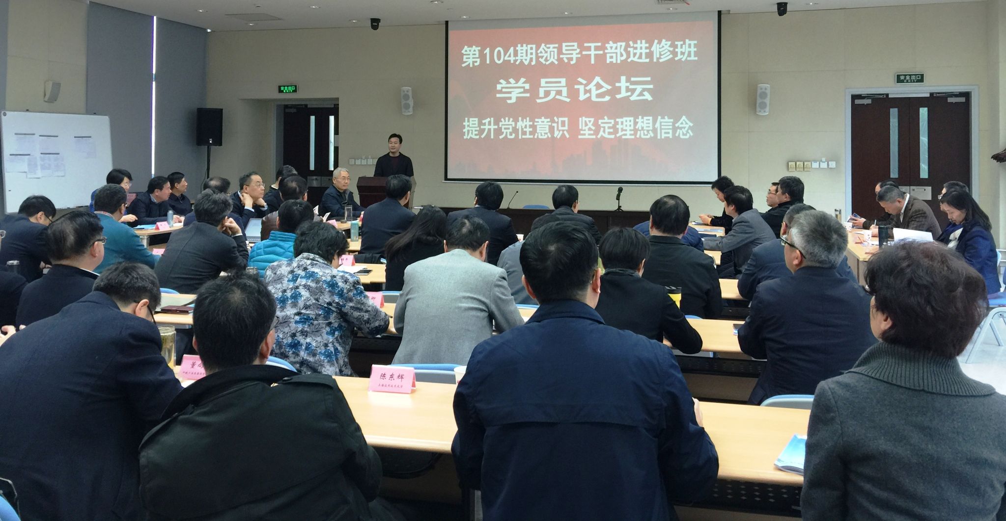 本网讯 3月13日下午,第104期领导干部进修班第1期学员论坛成功举办。论坛紧紧围绕“强化理论武装,坚定理想信念”的教学单元主题,以“提升党性意识,坚定理想信念”为主议题,下设四个分议题,就加强理论学习与党性意识,提升理论素养与党性修养,补好领导干部精神上的“钙”等内容进行了理性思考与探讨。论坛充分体现了“党校姓党”“突出主业主课”的精神要求,也展现了学员在党校学习两周后的学习收获与感悟。论坛由市委统战部秘书长吴金城学员主持。第104期领导干部进修班的全体学员,市委党校副校长曾峻等教学管理项目组成员全程参加了论坛。