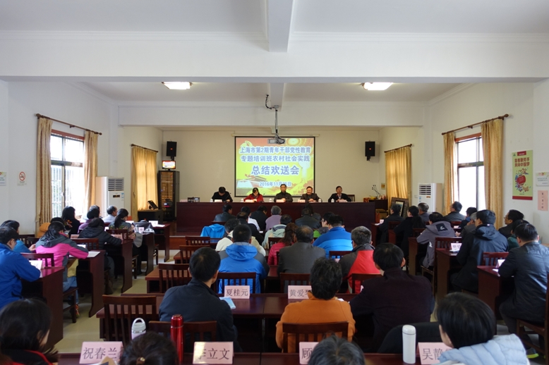 本网讯 11月25日下午,第二期青年干部党性教育专题培训班在崇明区建设镇大同村村部召开农村社会实践总结欢送会。建设镇党委副书记施建昌主持会议。市委党校局级组织员蔡华山、带教老师钱荣祥、建设镇党委组织委员赵迎梅、大同村党支部书记顾忠达出席会议。