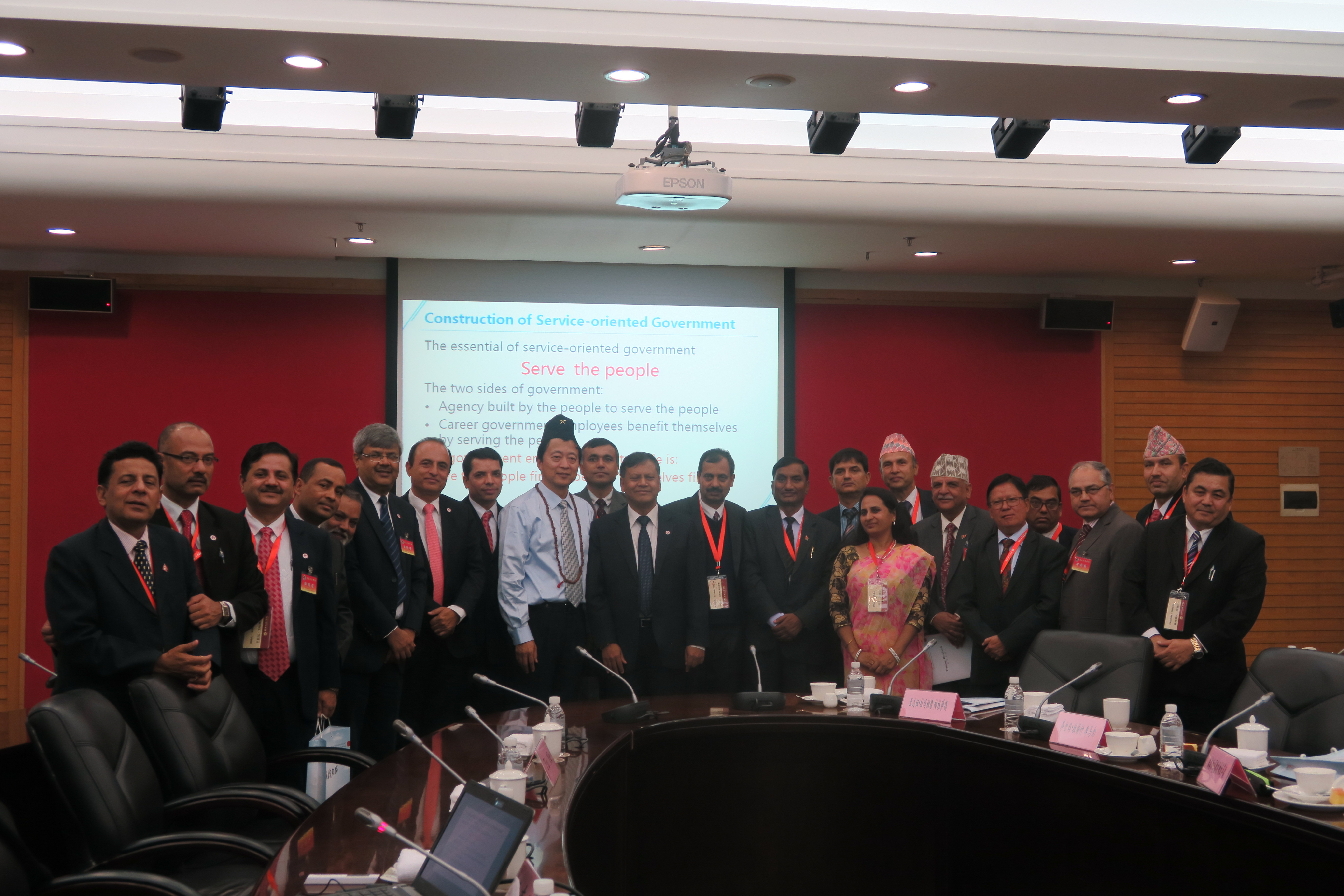 本网讯 11月20-22日,受国家行政学院培训中心委托,2016年尼泊尔执政能力建设部级研修班来我院研修。该班学员由来自尼泊尔总统府、副总统府、西部发展区政府、公共服务委员会、土地改革与管理部等各部门的21名高中级官员组成,其中副部级11名,司局级6名,处级4名。