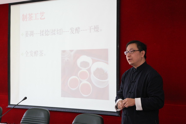 王圣麟老师首先介绍了茶的渊源、分类、功效和泡茶喝茶时应注意的事项等方面,详细讲解了茶艺知识,介绍了安溪铁观音、云南普洱茶、武夷大红袍等名茶,说明了饮茶的好处并提醒大家要健康饮茶,饮好茶。大家听后,对我国茶文化历史之悠久、内涵之丰富纷纷表示惊叹。