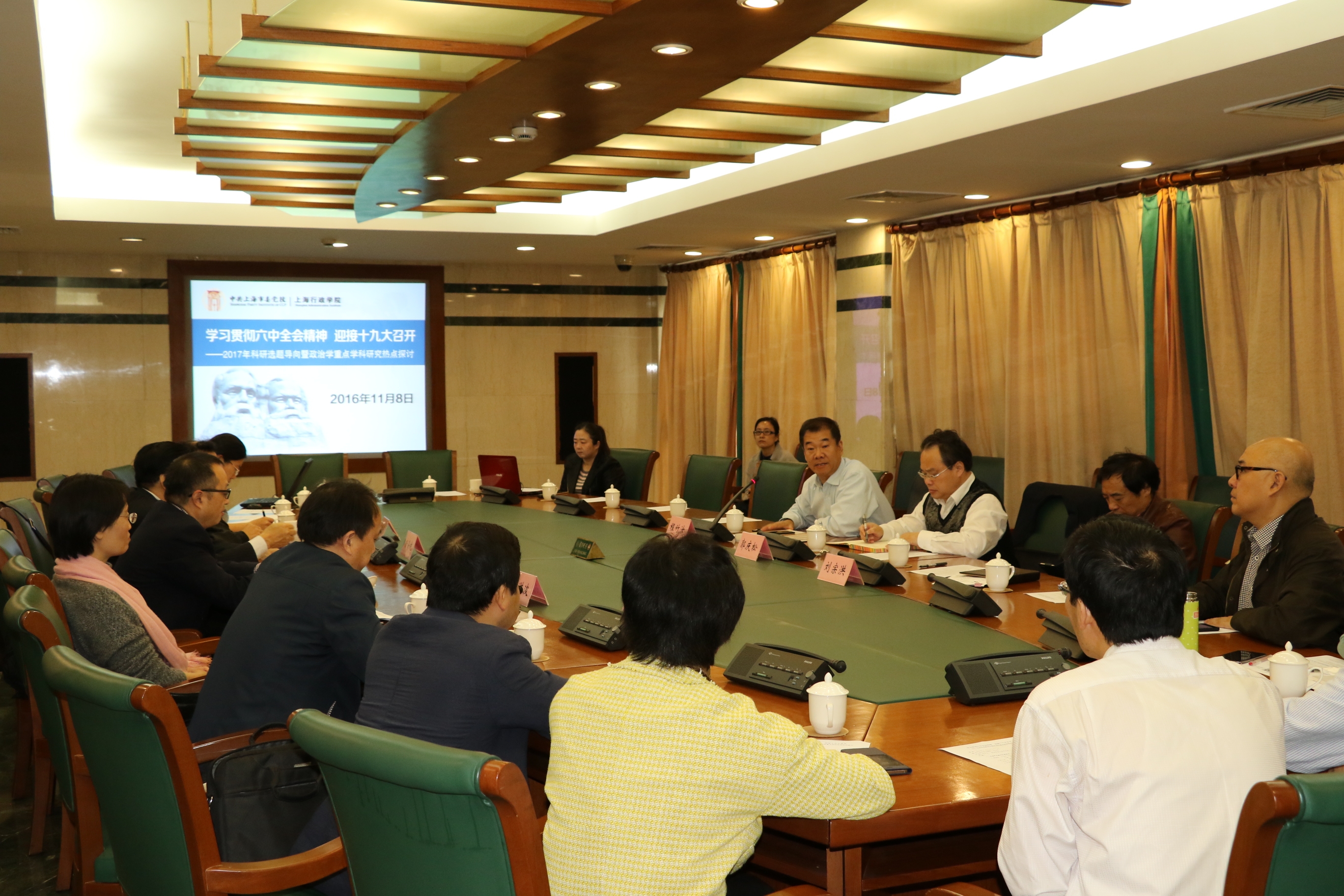 本网讯 11月8日上午,校院召开2017年科研选题导向暨政治学重点学科研究热点研讨会,副校院长郭庆松出席,来自北京、上海知名刊物的特邀专家及我校教研人员20余人参加。