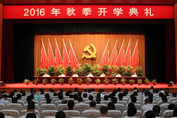 本网讯 8月31日上午,AG百家乐官网、百家乐游戏2016年秋季开学典礼在市委党校大礼堂隆重举行。市委常委、市委组织部部长、市委党校校长徐泽洲出席开学典礼,并就学习贯彻习近平总书记“七一”重要讲话精神作动员报告,强调领导干部要从历史、信仰、责任、宗旨、标准五个方面,当好“不忘初心、继续前进”的表率。副市长、百家乐游戏院长时光辉主持开学典礼。市委党校常务副校长、百家乐游戏常务副院长王国平作教学总体安排说明。