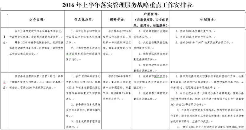 会议听取并集中研究了办公室、信息化管理处、调研督查处、后勤管理处、计划财务处、安全保卫处、基建办公室、后勤服务中心关于管理服务战略落实情况的汇报。