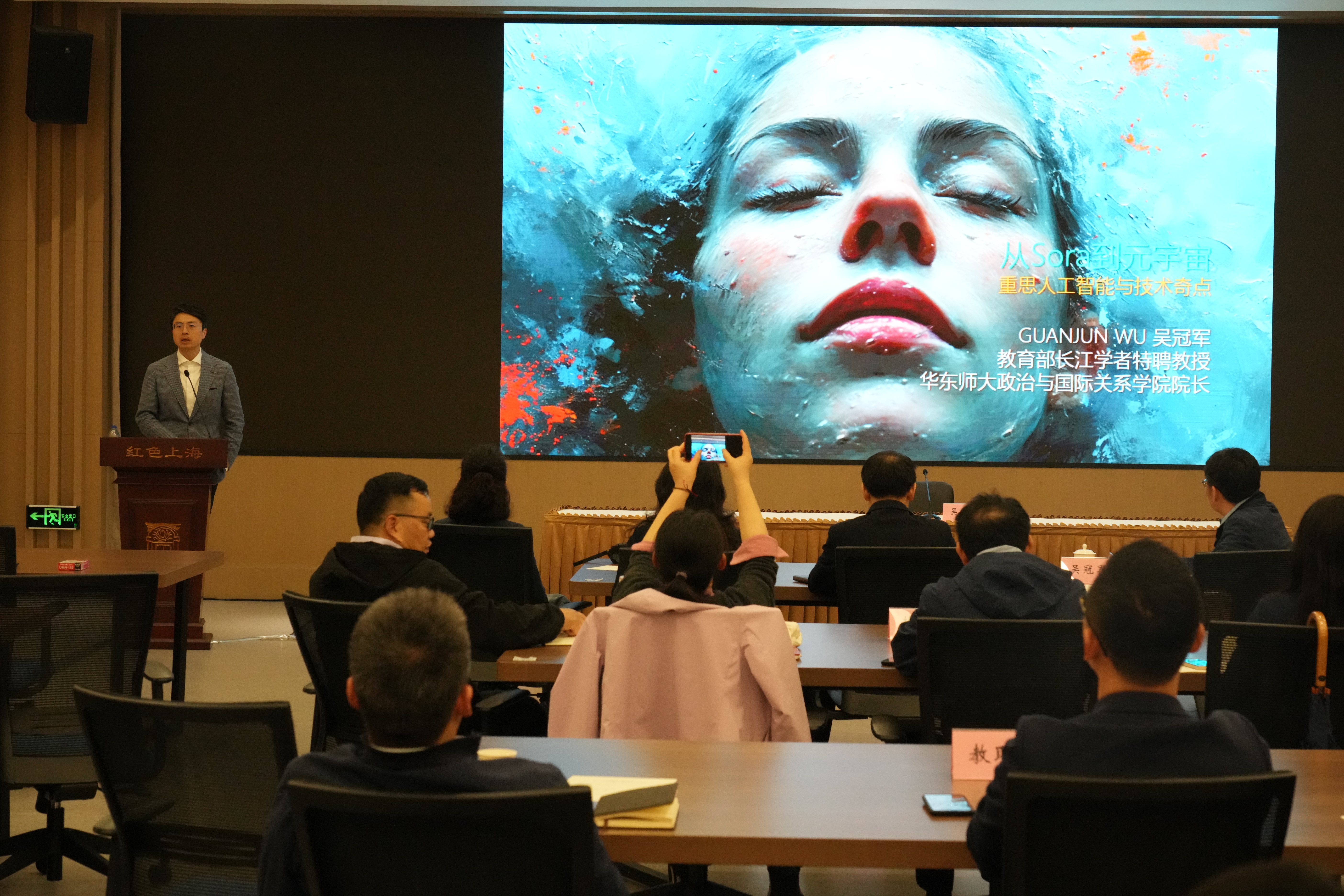 在主题讲座环节,华东师范大学政治与国际关系学院院长、奇点研究院院长吴冠军教授作题为“从Sora到元宇宙:重思人工智能与技术奇点”的讲座并与现场读者进行了精彩的互动交流。吴冠军教授认为,随着科技的发展,元宇宙和生成式AI不仅指明了未来世界丰富的可能性,也让我们对未来社会变化产生更多的思考。