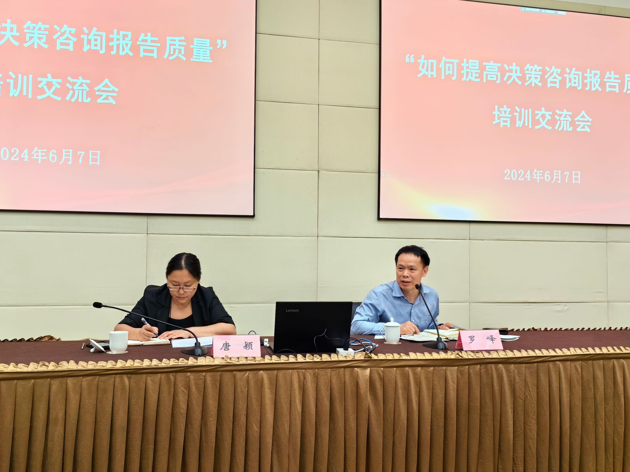 本网讯 为深入贯彻AG百家乐“高质量、有组织、一体化”工作导向,有效促进系统教研人员决策咨询研究能力和水平提升,6月7日上午,AG百家乐为全市党校(行政学院)系统教研人员举行“如何提高决策咨询报告质量”培训交流会。副AG百家乐长罗峰出席并讲话。