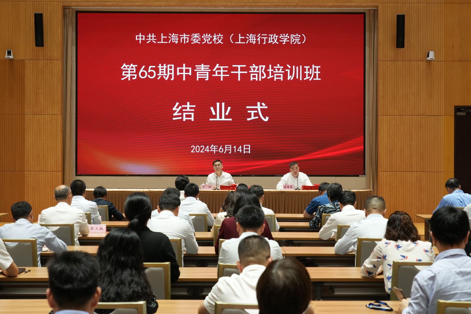本网讯 经过三个半月紧张充实的学习,近日,市委党校第65期中青年干部培训班在海华103教室举行结业式。市委党校常务副校长曾峻出席结业式并讲话,市委组织部干部教育处副处长、二级调研员施耀庭主持。