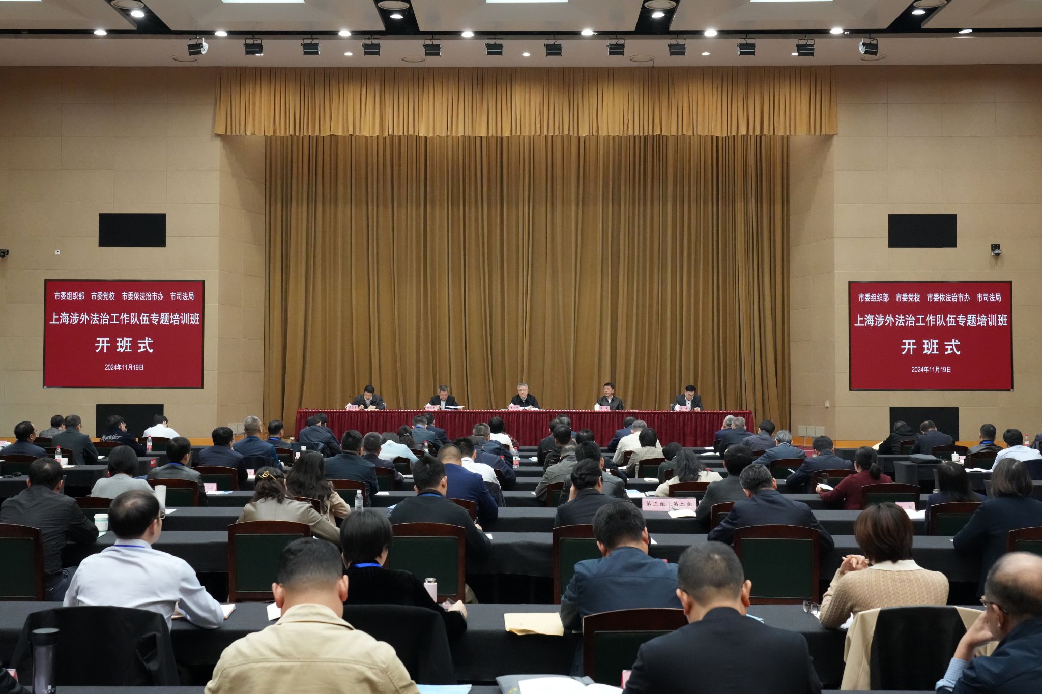 11月19日至20日,市委组织部、市委党校、市委依法治市办、市司法局联合举办上海涉外法治工作队伍专题培训班,首次对上海涉外法治工作队伍进行集中培训。市委副书记、市委政法委书记、市委依法治市委副主任朱忠明出席开班式并作动员讲话。市委副秘书长燕爽,市委组织部副部长周志军,市委党校常务副校长曾峻,市委依法治市办副主任、市司法局党委书记、局长吴坚勇出席开班式。