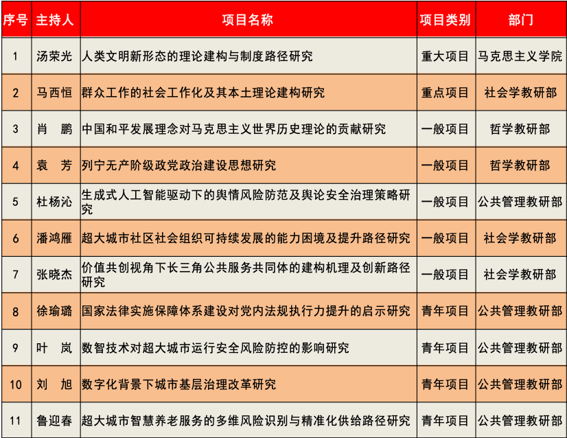 近日,全国哲学社会科学工作办公室公布2024年国家社科基金重大项目立项名单,我校马克思主义学院研究员汤荣光为首席专家的课题“人类文明新形态的理论建构与制度路径研究”获得立项。