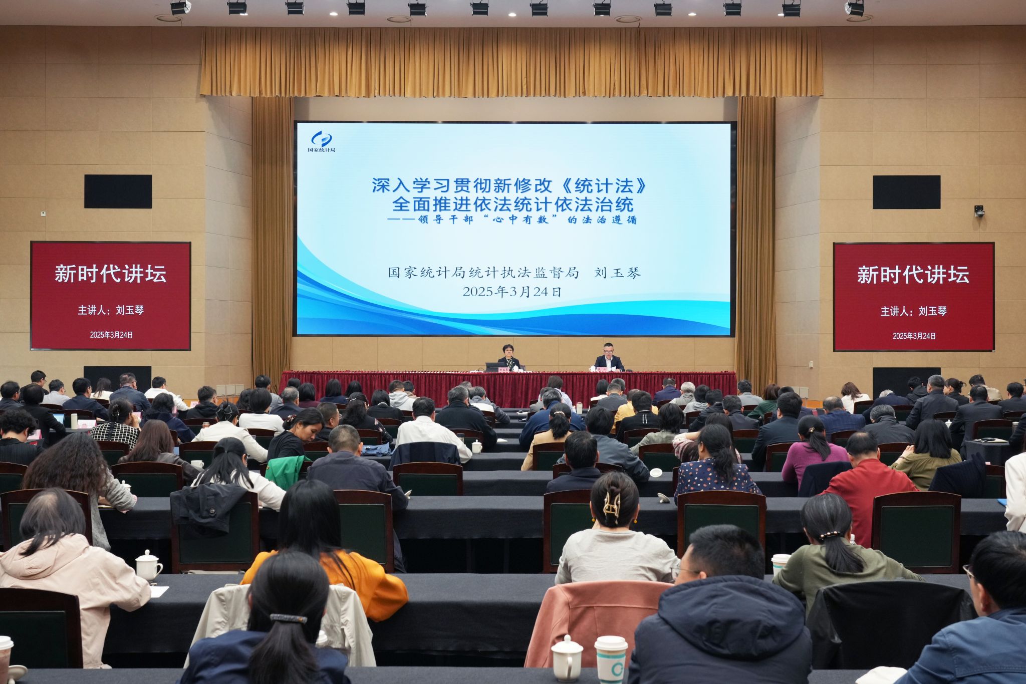 刘玉琴表示,此次新修改《统计法》是贯彻落实党中央重大决策部署、笃行习近平法治思想、保障统计事业健康发展、服务中国式现代化的重要举措和生动实践,为统计工作更好地适应新时代、担当新使命奠定了坚实的制度基础。她还就领导干部“管统计、用统计”风险防范,通过具体案例,提示了统计法律红线底线。