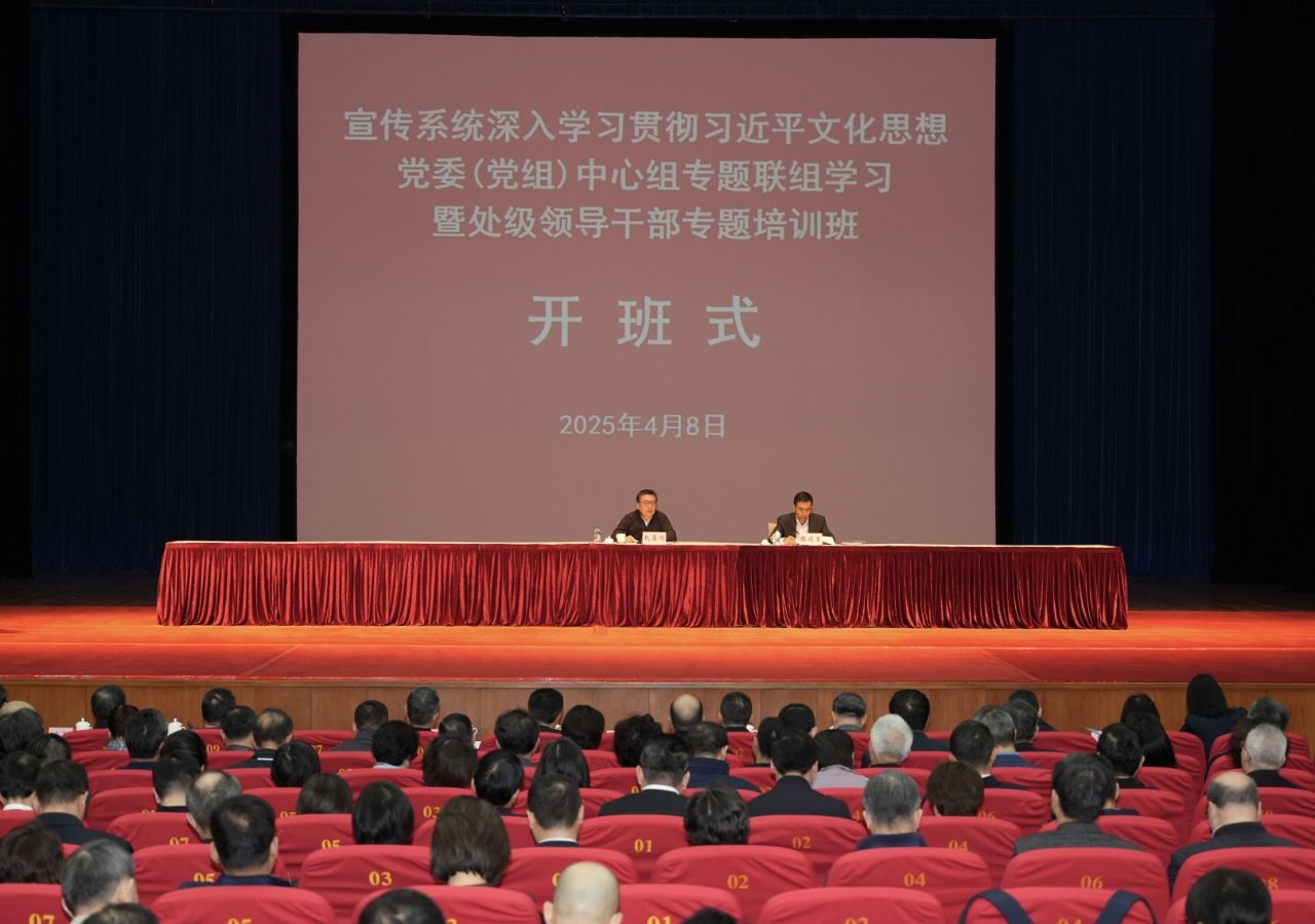 4月8日至11日,全市宣传系统深入学习贯彻习近平文化思想党委(党组)中心组专题联组学习暨处级领导干部专题培训班在市委党校举办。市委常委、宣传部部长赵嘉鸣同志出席开班式并做动员讲话。