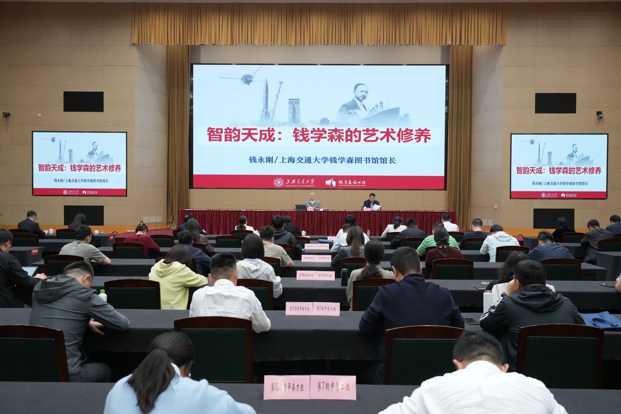 钱永刚先生以“智韵天成:钱学森的艺术修养”为题,作专题讲座。从美术、摄影、音乐、文艺和哲学五个方面,讲述了钱学森在工作和生活中的点点滴滴,带领听众走近一个立体丰满的钱学森。