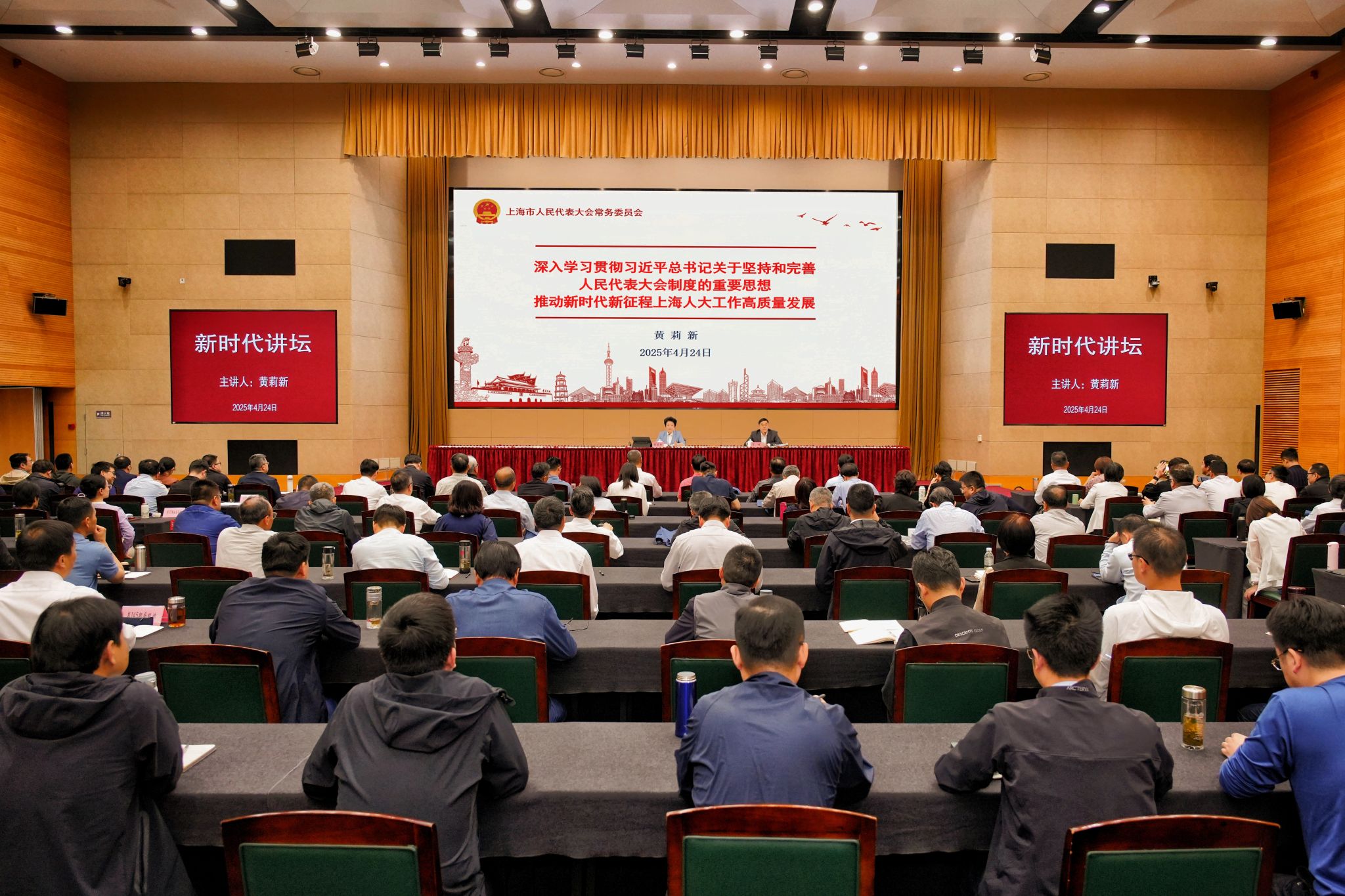 4月24日,市人大常委会主任黄莉新来校主讲新时代讲坛,作“深入学习贯彻习近平总书记关于坚持和完善人民代表大会制度的重要思想,推动新时代新征程上海人大工作高质量发展”专题报告。常务副AG百家乐长曾峻主持。