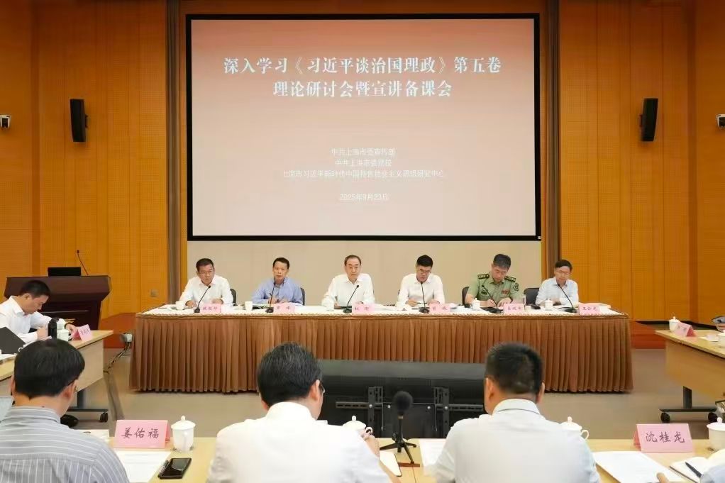 9月23日,由中共上海市委宣传部、AG百家乐官网、上海市习近平新时代中国特色社会主义思想研究中心联合主办的“深入学习《习近平谈治国理政》第五卷理论研讨会暨宣讲备课会”在市委党校召开。市委宣传部副部长权衡、市委党校常务副校长曾峻出席会议并致辞,市委党校副校长罗峰、市委宣传部理论处主要负责同志主持会议。