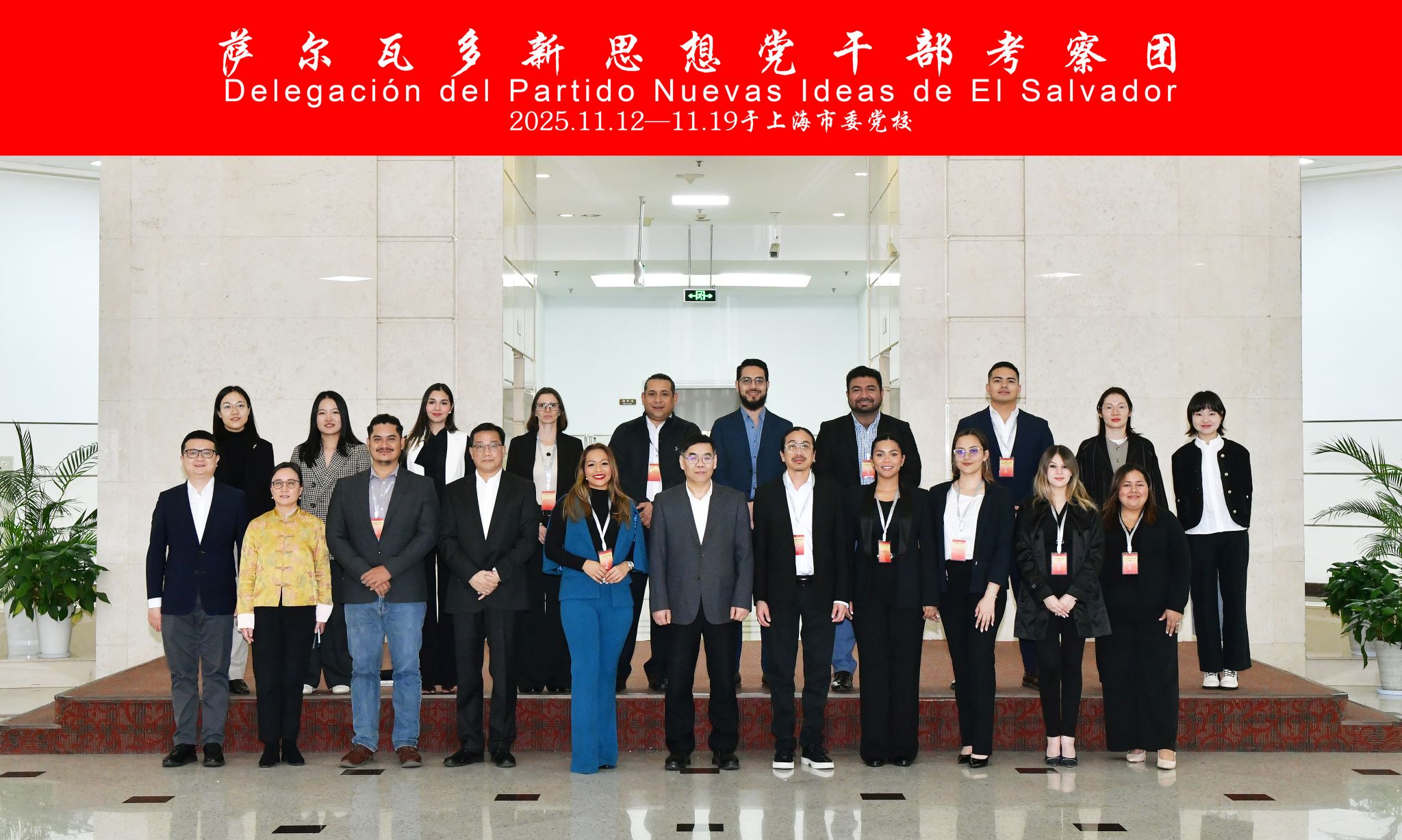 应中共中央对外联络部邀请,萨尔瓦多新思想党干部考察团于11月12日至19日访沪。考察团由新思想党全国政治顾问、政治培训学校校长西尔维奥·阿基诺率领,聚焦中国共产党党校的办学体制与中国式现代化的上海实践,开展深度调研,我校承接考察团在沪参访活动。常务副校长曾峻出席欢迎仪式并致辞,副校长王永杰向考察团团长赠送《习近平谈治国理政》第五卷英文版。