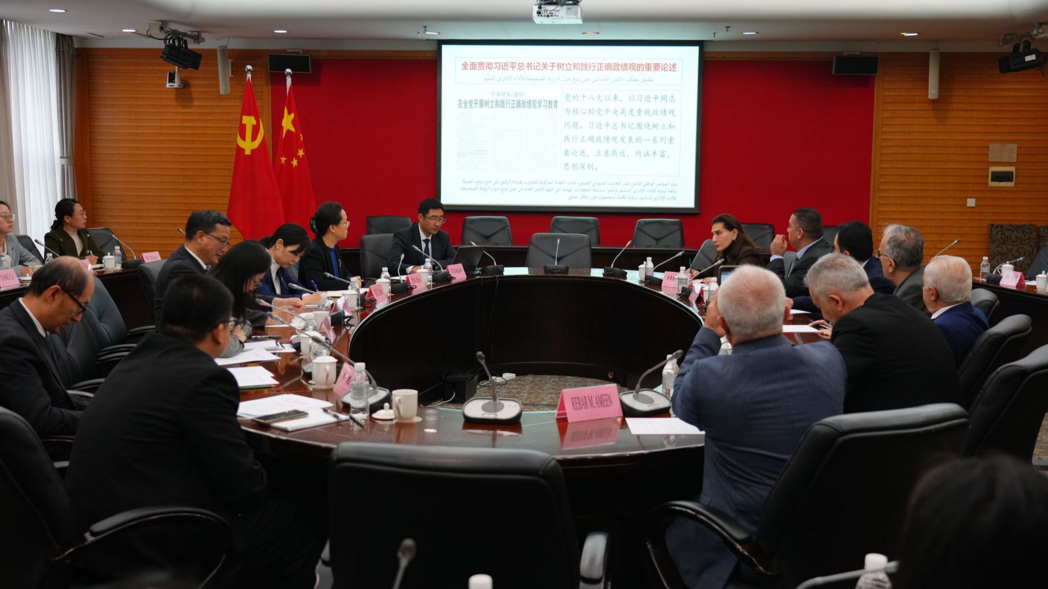 4月14日,伊拉克全球文明倡议研究中心主席卡瓦·马哈茂德率领考察团到访AG百家乐。考察团由来自伊拉克、巴勒斯坦、叙利亚、约旦、黎巴嫩等国的政党人士及智库高校学者组成。副AG百家乐长王永杰主持会见。