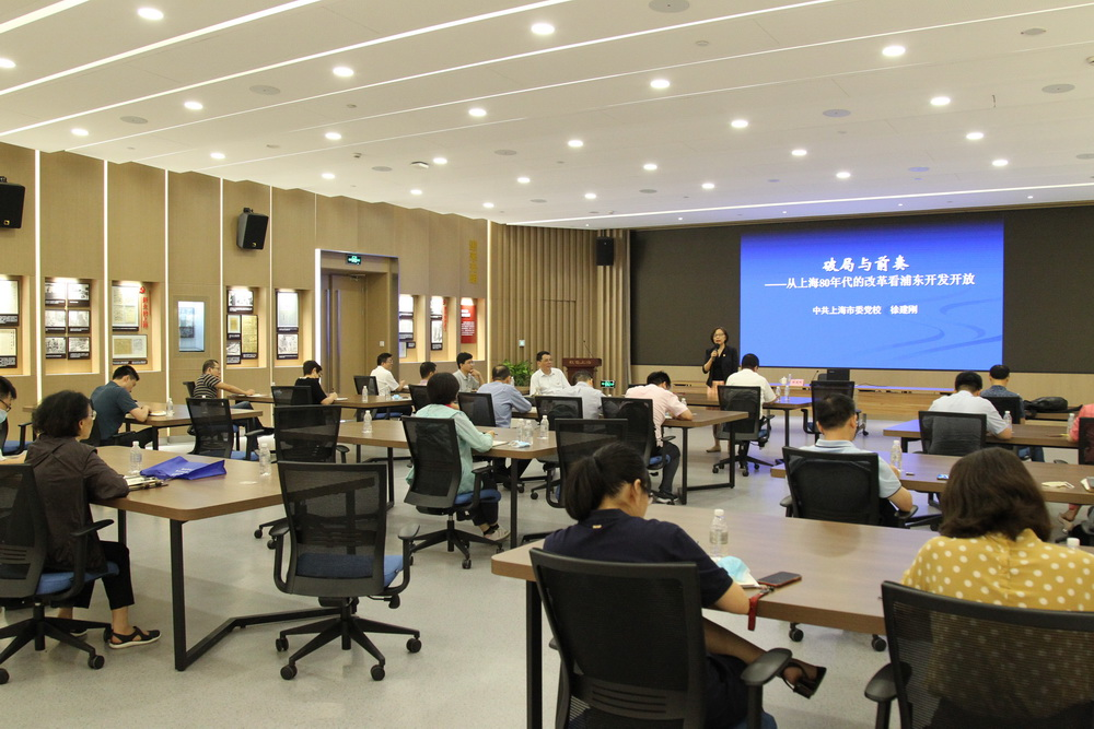 本网讯 为深入推进“四史”学习教育,严格落实双重组织生活制度和党支部工作联系点制度,7月21日上午,常务副AG百家乐长徐建刚为党史党建教研部党支部和办公室党支部作题为“破局与前奏——从上海80年代的改革看浦东开发开放”的党课。党史党建教研部党支部书记吴志洁主持。两支部全体党员参加活动。