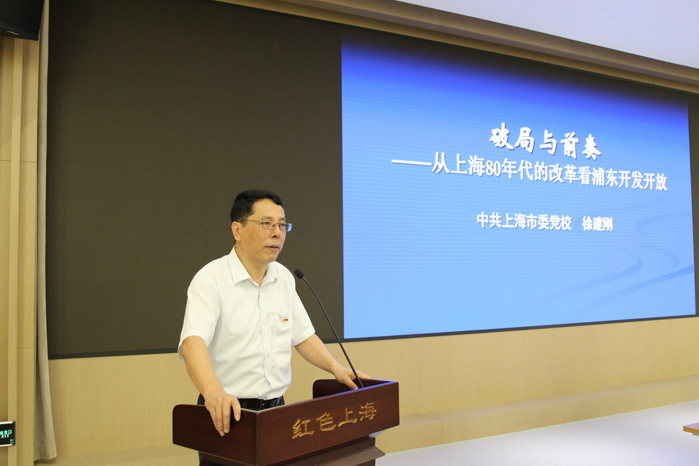 徐建刚也与党员们分享了学习研究“四史”的切身感悟:越是对上海改革开放的历史细节了解越多,越能深刻理解“四个放在”这一上海一切工作的基点。他认为,市委党校的教研咨工作应立足这一基点,在国际和全国的大格局中研究谋划上海发展新招,助力上海更好服务全国改革发展大局。在课堂讨论环节,徐建刚就党员们提出的“1988年是否是上海改革关键转折点”“如何理解中央对上海改革开放探索的支持”等问题进行了互动交流。