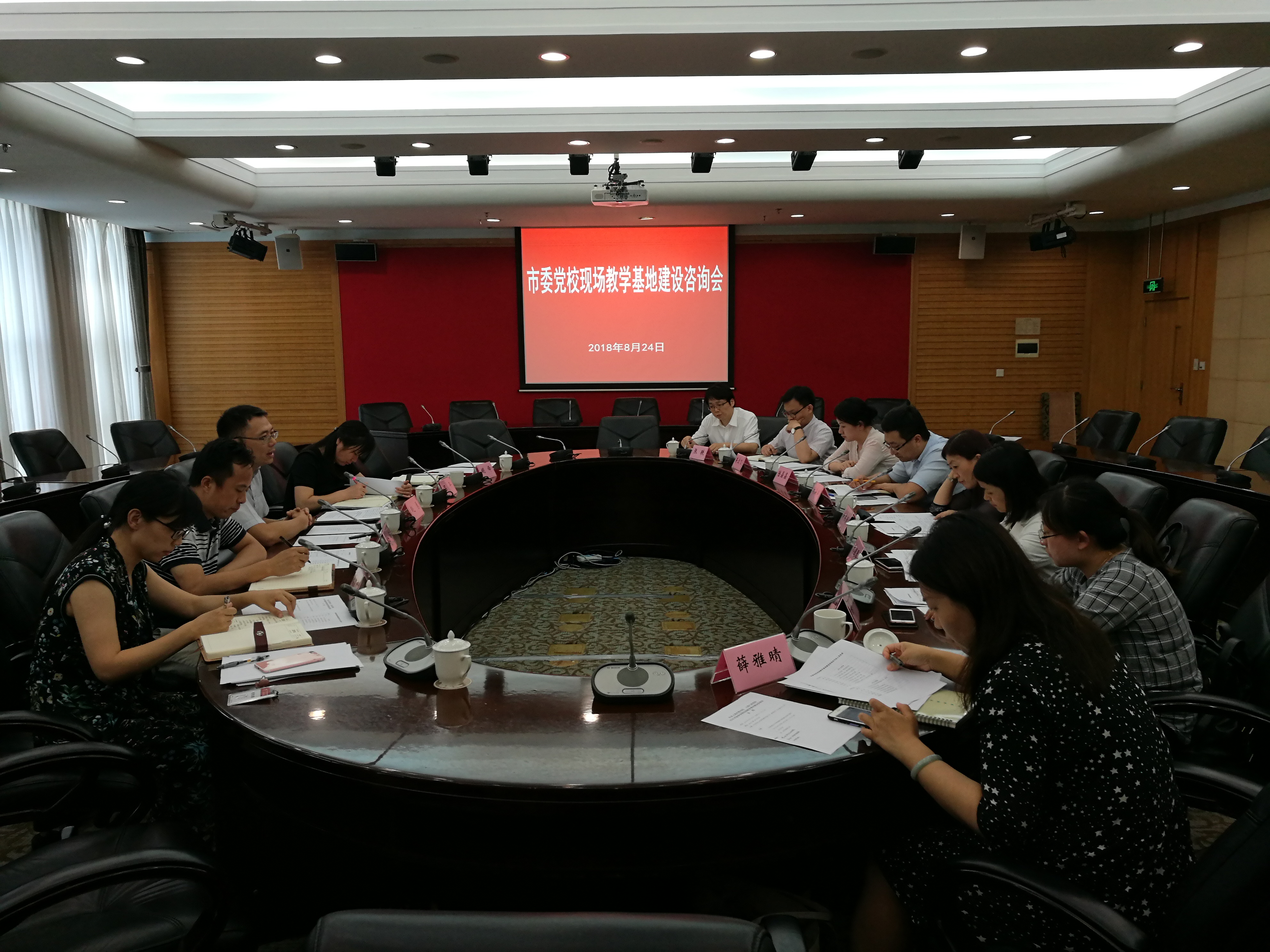 本网讯 8月24日下午,教务处在海兴202会议室召开市委党校现场教学基地建设咨询会。公共管理教研部副主任、教务处负责人赵勇教授主持会议。来自市经信工作党委、市金融党委、市科技党委、市商务委、市发改委、市国资委等单位负责干部培训的相关同志参加咨询会,并特邀浦东科技创新促进中心、京东商城公共事务部相关负责人参会。