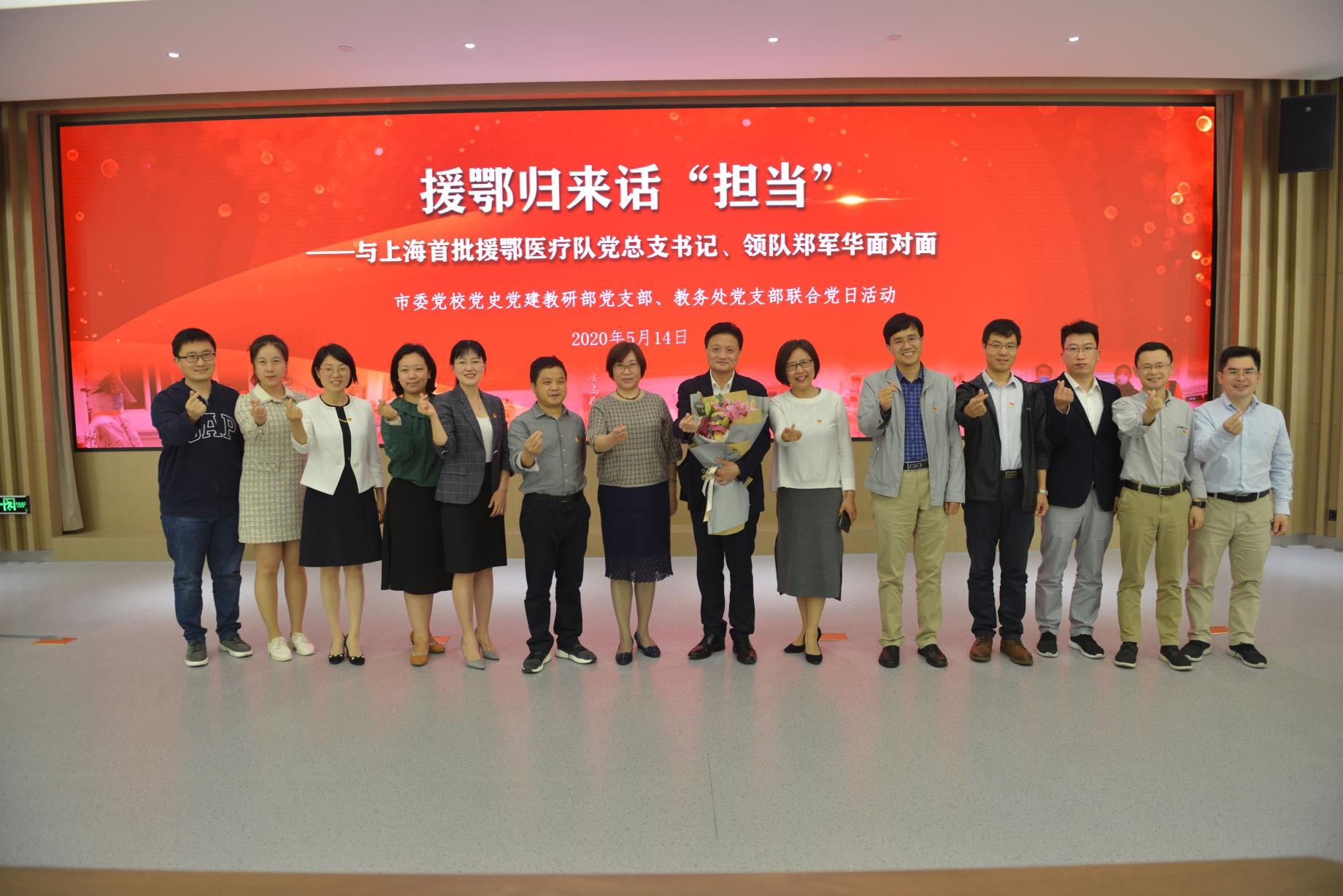 本网讯 新冠无情,人间有爱;责任担当,医者仁心。5月14日下午,党史党建教研部党支部与教务处党支部在红色上海主题教育馆举行援鄂归来话“担当”联合党日活动。活动特邀上海市第一人民医院副院长、上海首批援鄂医疗队临时党总支书记和领队郑军华与大家一起分享了他的援鄂经历。