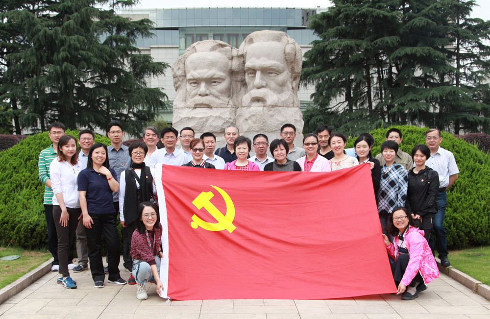 活动第二站是中国共产党的诞生地——中共一大会址。兴业路上人潮涌动,可见在党的生日前夕到党的诞生地来瞻仰学习已成为很多党员同志的共同选择。大家安静地等候,又认真检查了胸前佩戴的党员徽章,怀着崇敬的心情在会址前集体合影,表达了不忘初心向前进的决心。