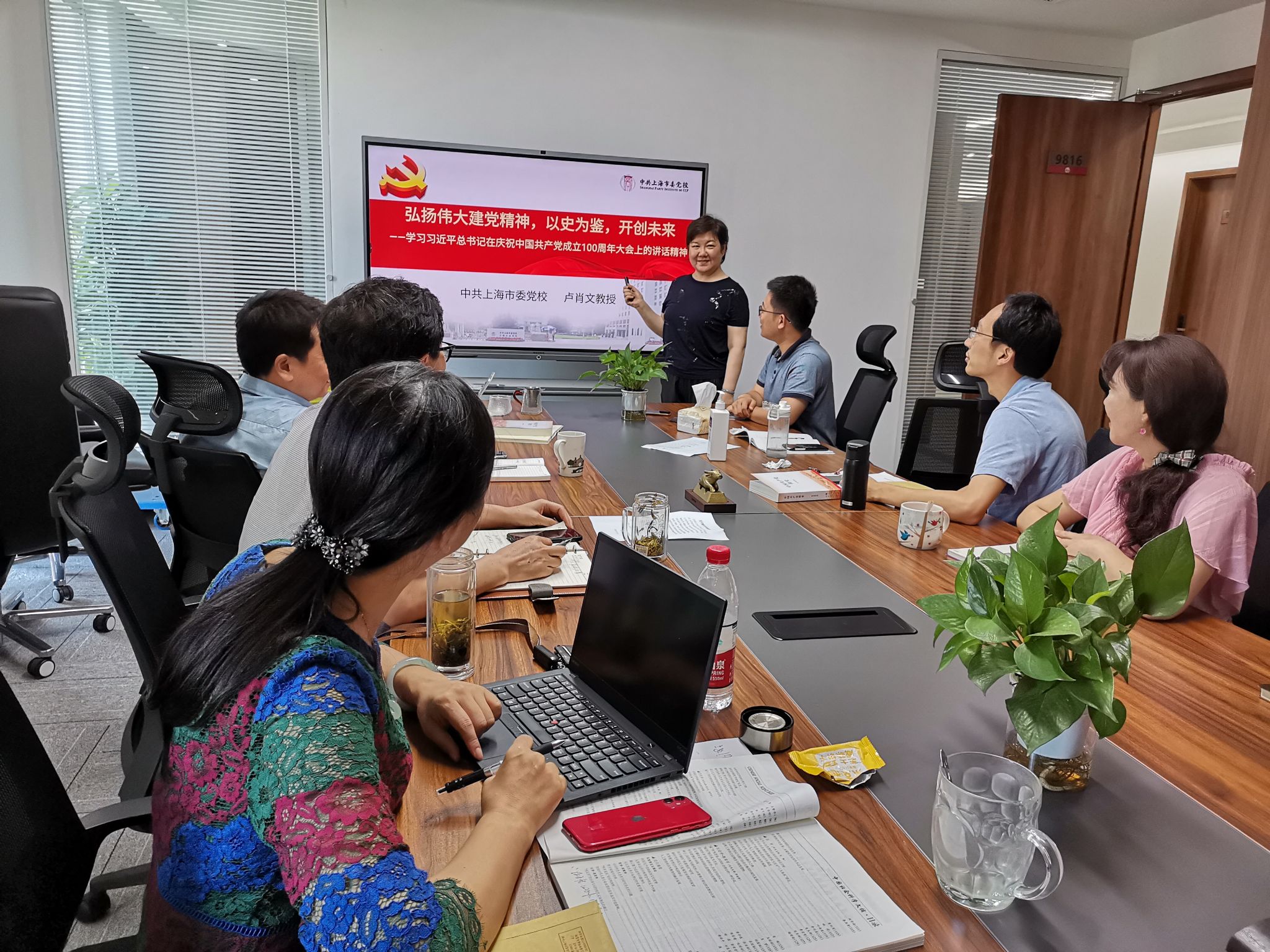 卢肖文教授以“弘扬建党精神,以史为鉴,开创未来——学习习近平总书记在庆祝建党100周年大会上的讲话建设”为题,从深刻认识“七一”重要讲话的重大意义,主要内容和逻辑架构,学好讲话精神,为实现中华民族伟大复兴而努力奋斗三个角度畅谈了学习“七一”重要讲话的心得体会。