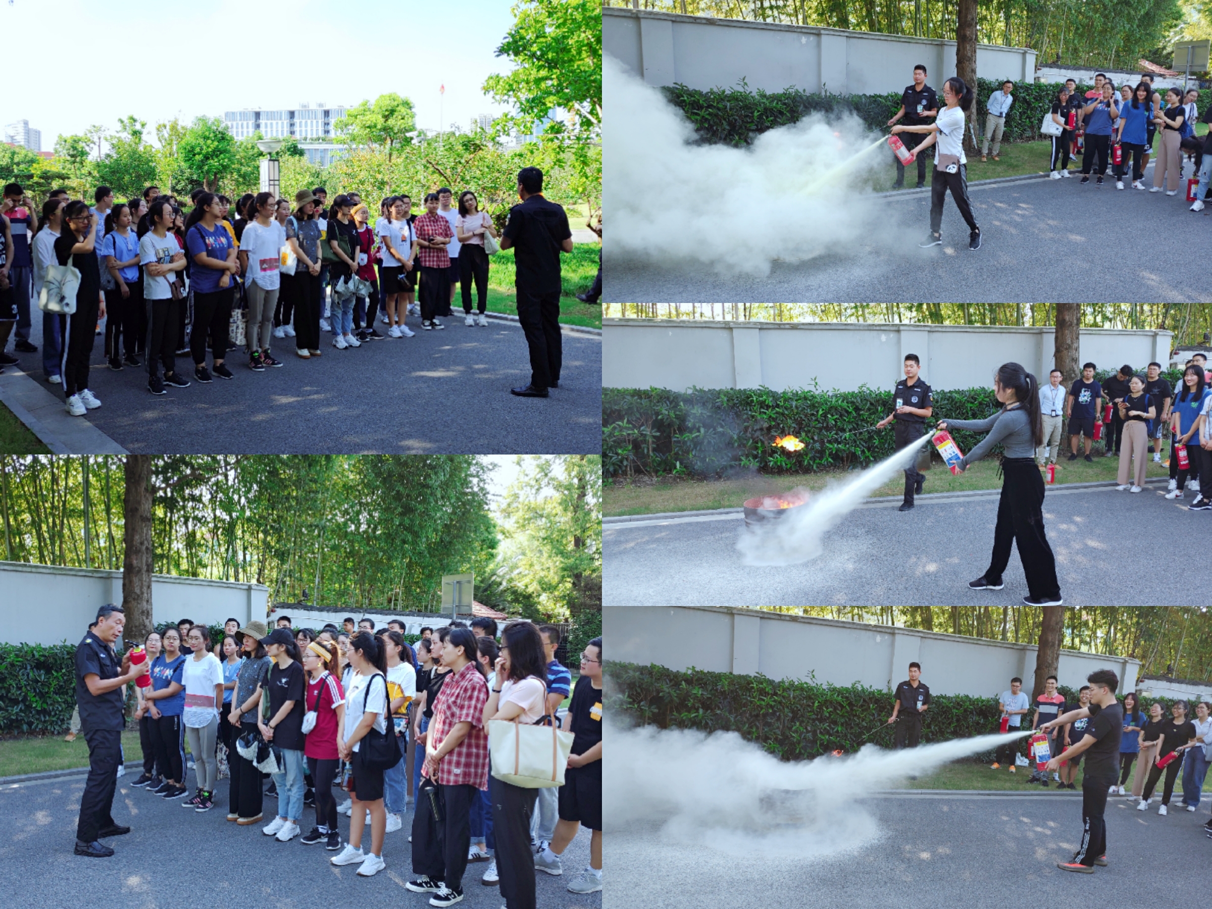 本网讯 9月16日下午,校后勤保卫处与研究生部合作,开展了研究生新生安全教育培训。培训中,新世纪物业安保部负责人为同学们讲授了在读期间需要严格遵守的校院安全规章制度、校内现有消防设施设备的操作使用方法及注意事项,以及预防火灾、火场逃生、火情处置等相关知识与技巧。新世纪物业安保部进行了灭火器灭火实训操演。本次培训内容丰富,简明实用,节奏紧凑,精彩纷呈,同学们专心听讲,积极互动,取得了预期的教学效果。