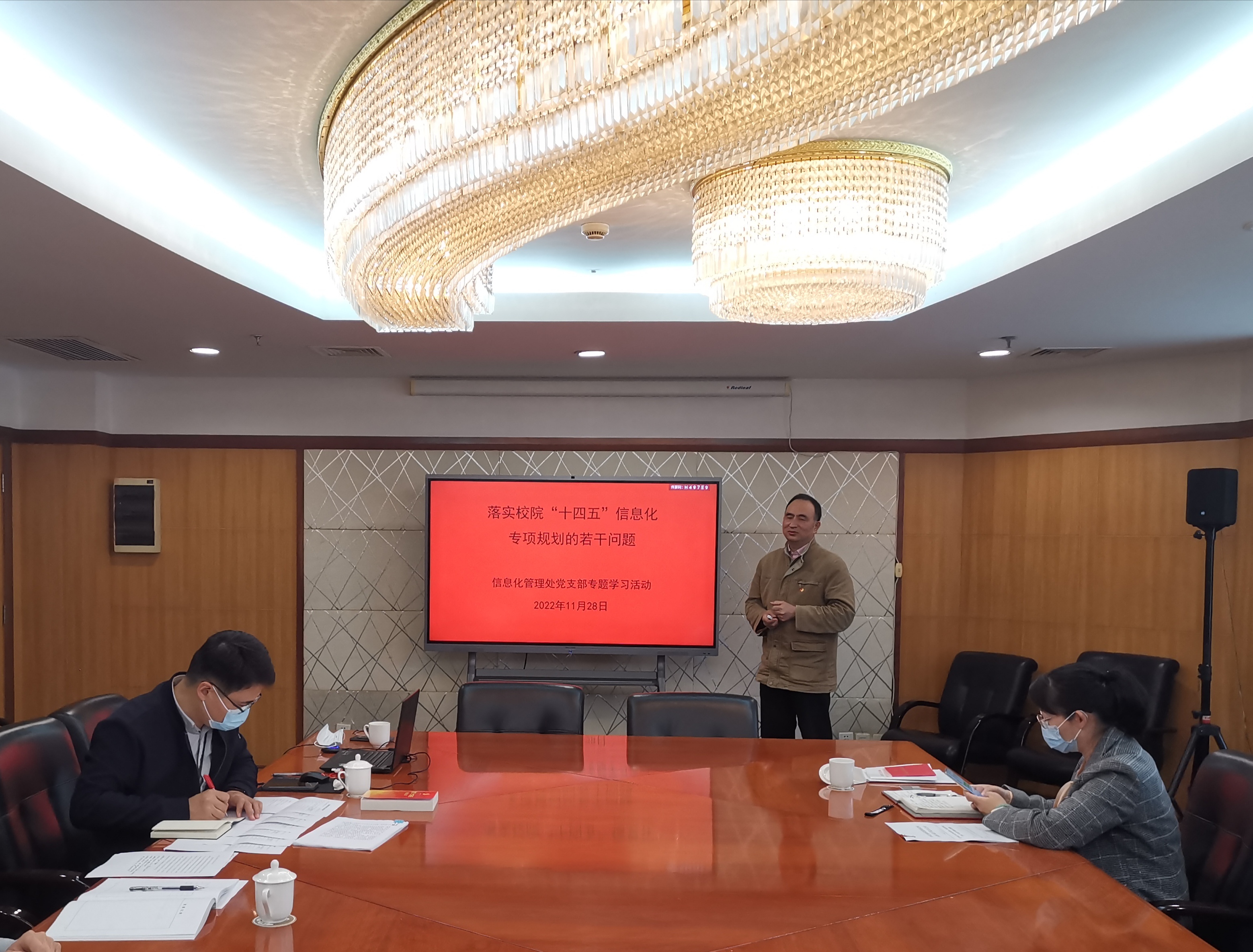 本网讯 11月28日下午,信息化管理处党支部全体党员开展专题学习活动。活动内容紧扣学习贯彻党的二十大精神,进一步推进AG百家乐“十四五”信息化专项规划的贯彻落实。党支部书记郑冬岩主持活动。