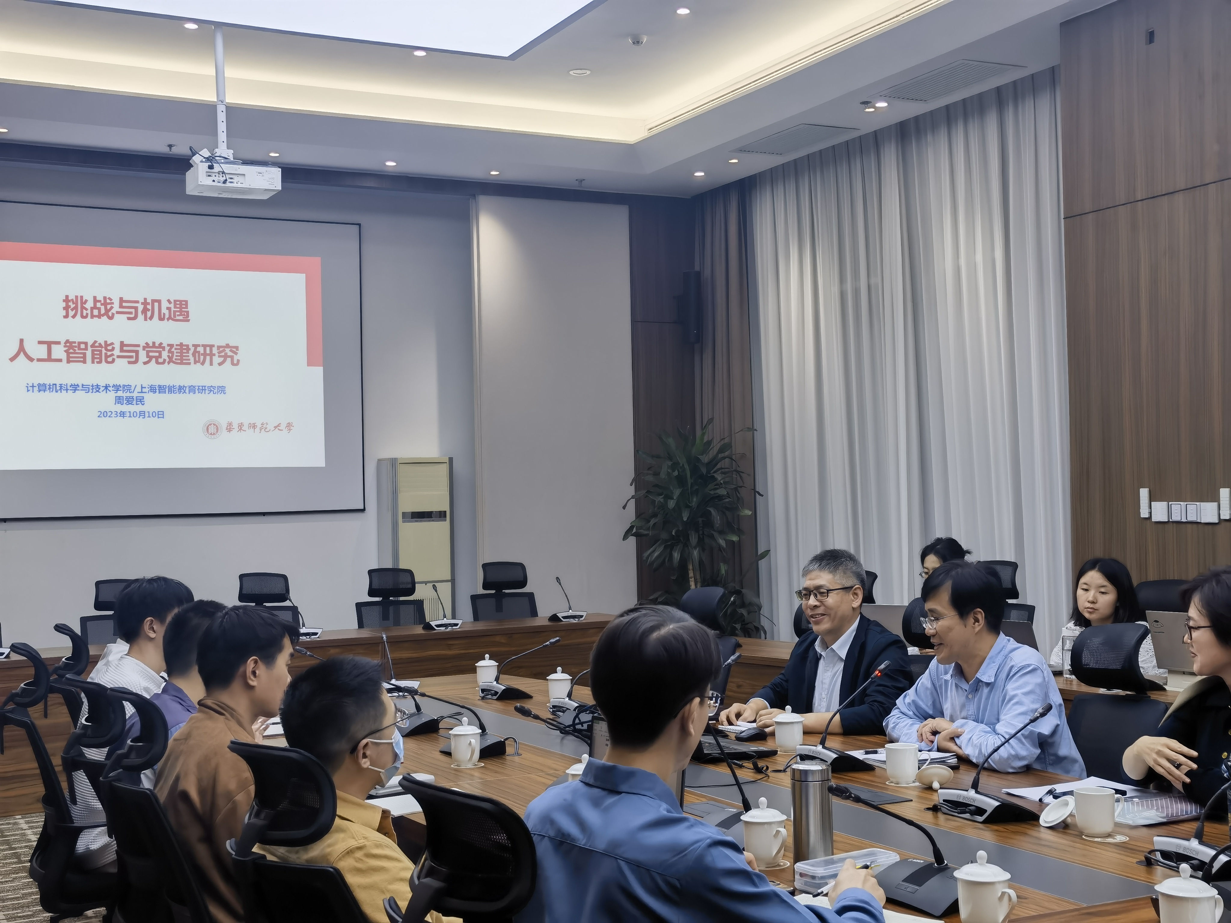 本网讯 为推动党的建设信息化、数字化,深化党建工作改革创新,迎接党建智能化时代的到来,AG百家乐官网党的建设教研部于10月10日举办“挑战与机遇——人工智能与党建研究”学术讲座,讲座由党的建设教研部主任赵刚印教授主持,周爱民教授主讲。周爱民教授现任华东师范大学计算机科学与技术学院院长、华东师范大学上海智能教育研究院院长、教育部华东师范大学智能教育实验室副主任、上海市IV高峰学科(智能教育)负责人。