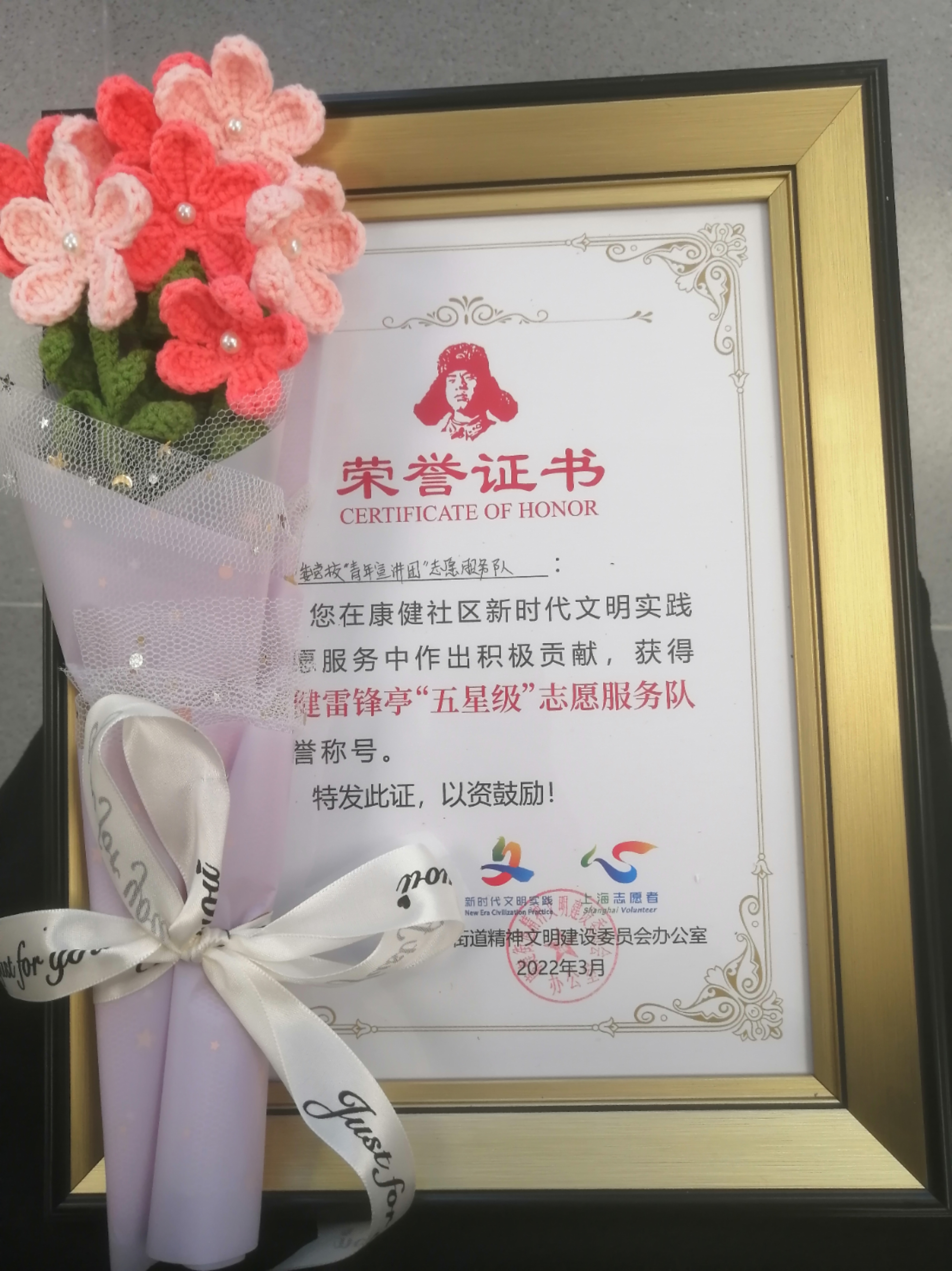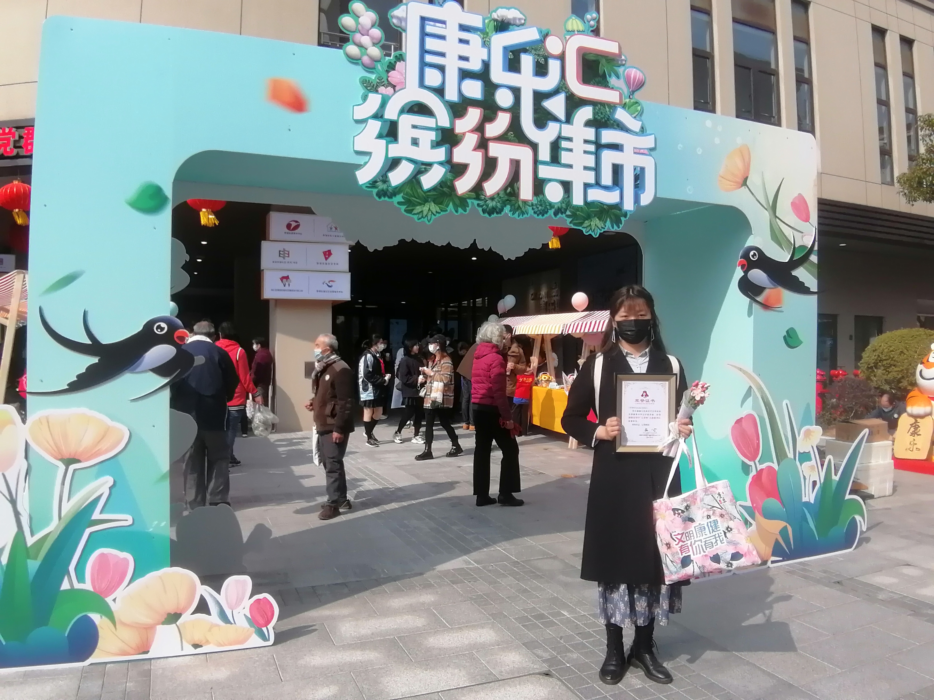 本网讯 3月3日上午,在康健街道社区党群服务中心举办的“‘康乐汇缤纷集市’新时代文明实践项目启动仪式”上,我校研究生新青年讲学团获“康健雷锋亭‘五星级’志愿服务队”荣誉称号。讲学团研究生代表胡秋玲参与表彰仪式。