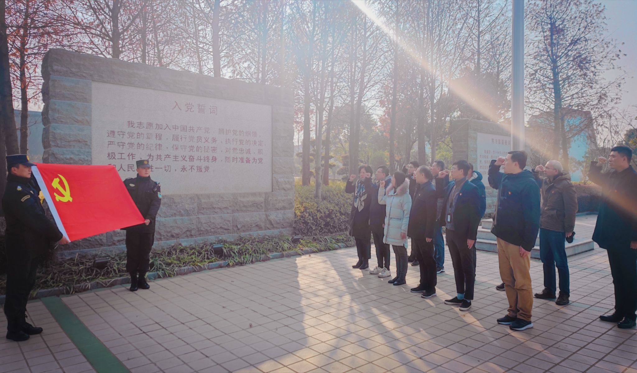 上午九时,支部党员在校宣誓广场集合,举行重温入党宣誓仪式。面对鲜红的党旗,面对庄严的入党宣誓墙,同志们追忆入党时的激情岁月,共叙入党时的赤子初心,并在支部书记黄辞海的带领下重温入党誓词。同志们满怀深情、充满自豪与自信的宣誓响彻广场上空。