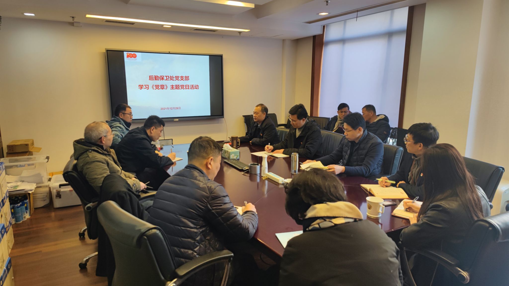 本网讯 12月29日上午,后勤保卫处党支部组织全体党员干部开展“学习党的章程 牢记初心使命”主题党日活动。