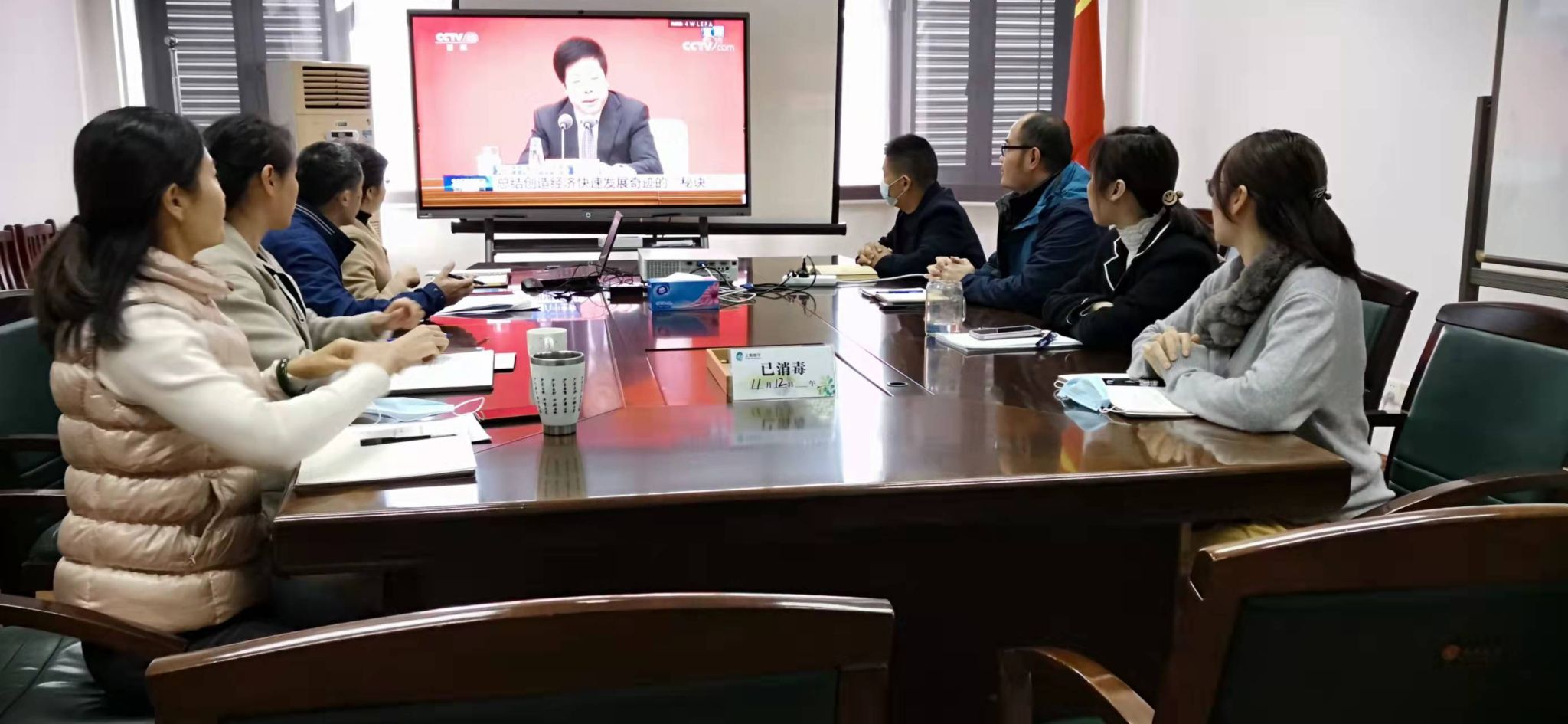 本网讯 11月12日上午,公务员培训处党支部组织党员集体收看党的十九届六中全会新闻发布会并开展交流学习。