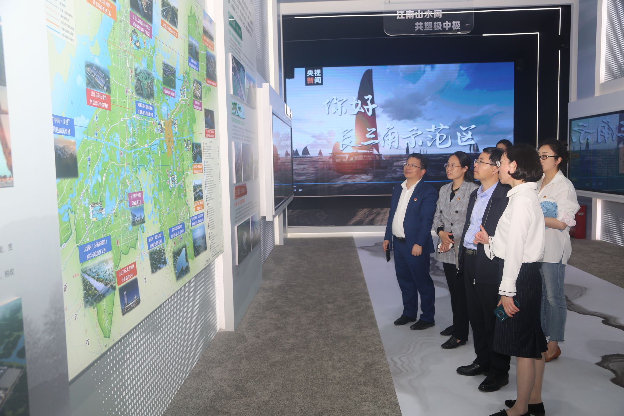 在示范区展示厅,全体党员看展板、观视频、听讲解,全面了解了长三角生态绿色一体化发展的历程、取得的各项示范性成果,深切体会到示范区未来发展的宏伟前景和广阔空间。
