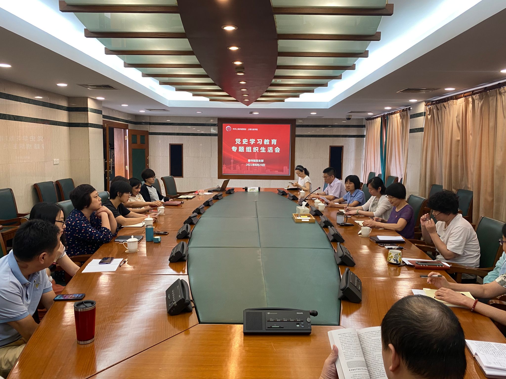会议首先由支部书记金晓莉报告了上半年党支部工作情况特别是开展党史学习教育情况,通报了支部委员会检视问题情况。半年来,支部认真贯彻“学史明理、学史增信、学史崇德、学史力行”要求,结合图书馆工作特色和实际,制订了图书馆党支部党史学习教育计划,开展了有声有色的党史学习教育活动,在创新学习交流活动形式的同时注重与业务工作深度融合。通过系列党史学习教育活动,党员们学习党的理论、党的历史,分享党史故事、撰写主题征文、推荐红色资源,更新了知识结构,提高了综合素养,增强了履职能力,取得了党史学习与业务工作相互促进的效果。