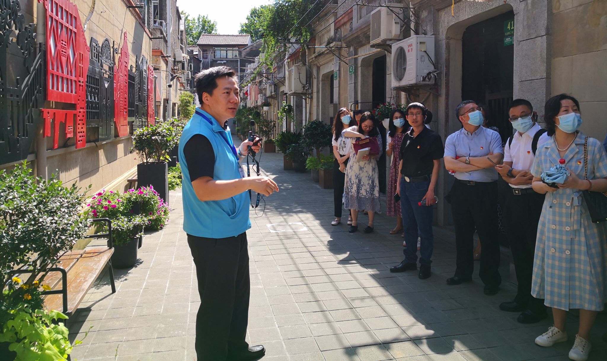 于健宁以“红色淮海、活力淮海、时尚淮海和幸福淮海”建设为着力点,带领大家参观又新印刷所旧址、中共上海区委党校旧址和全国首家红色主题社区直播间,在淮海中路街道楼宇党建服务站和新天地商圈党群服务站与相关负责人展开互动交流。在共治共建整治环境惠民生的西成里小区,小区书记着重向大家介绍了街道立足切实改善民生,恢复历史建筑原貌,认真分析、仔细规划、积极协调、持续推进西成里生态环境综合治理,让居民能实实在在地体会到便捷感、获得感、幸福感的故事……