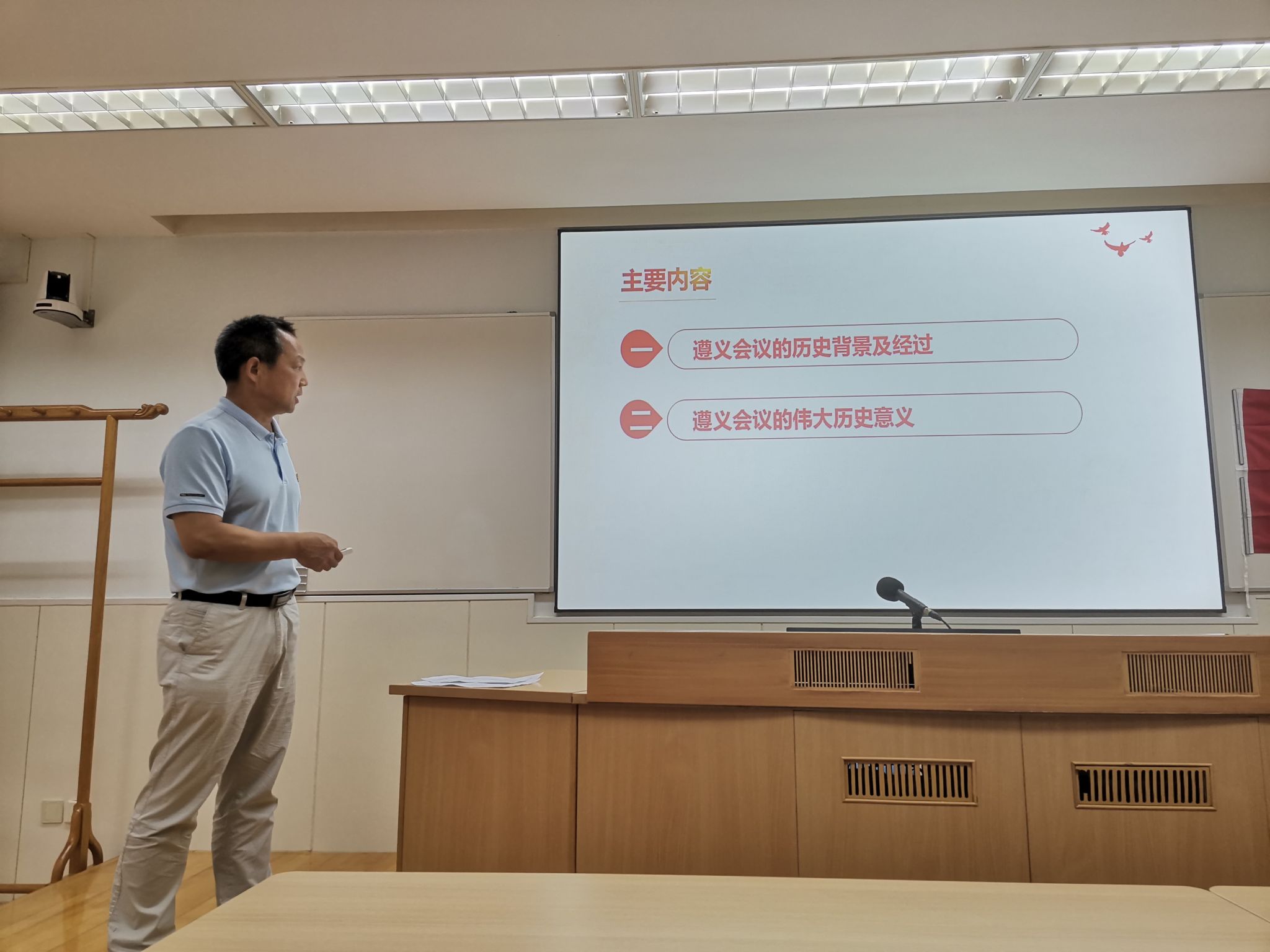 活动中,党员戎冬敏以“井冈山精神永远指引我们前行”为题讲党课。课程内容逻辑脉络清晰,既有故事性也有理论性,带领大家重温我党那段艰苦岁月。随后,党员江波以“遵义会议精神永放光芒”为题讲述了党在“极度危难的时刻”如何拨乱反正,坚定信念,实事求是,一步一步走向胜利的。讲课中穿插视频资料,并运用问题引发大家互动讨论,课堂气氛活跃。