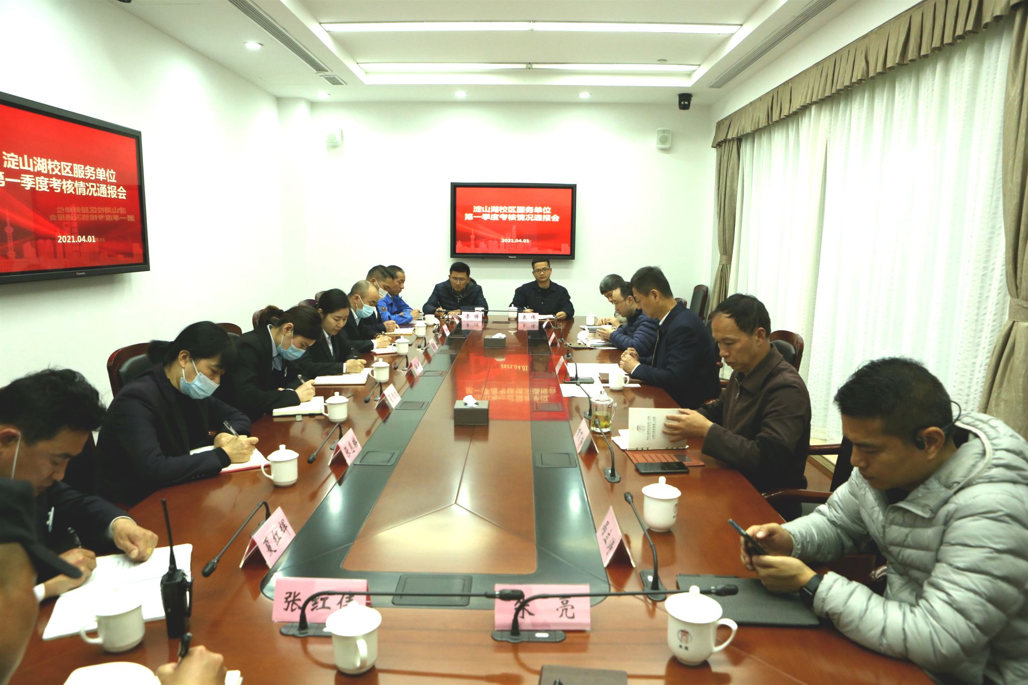 本网讯 近日,淀山湖校区管理办公室组织开展了校区物业、安保2021年第一季度服务质量考核。