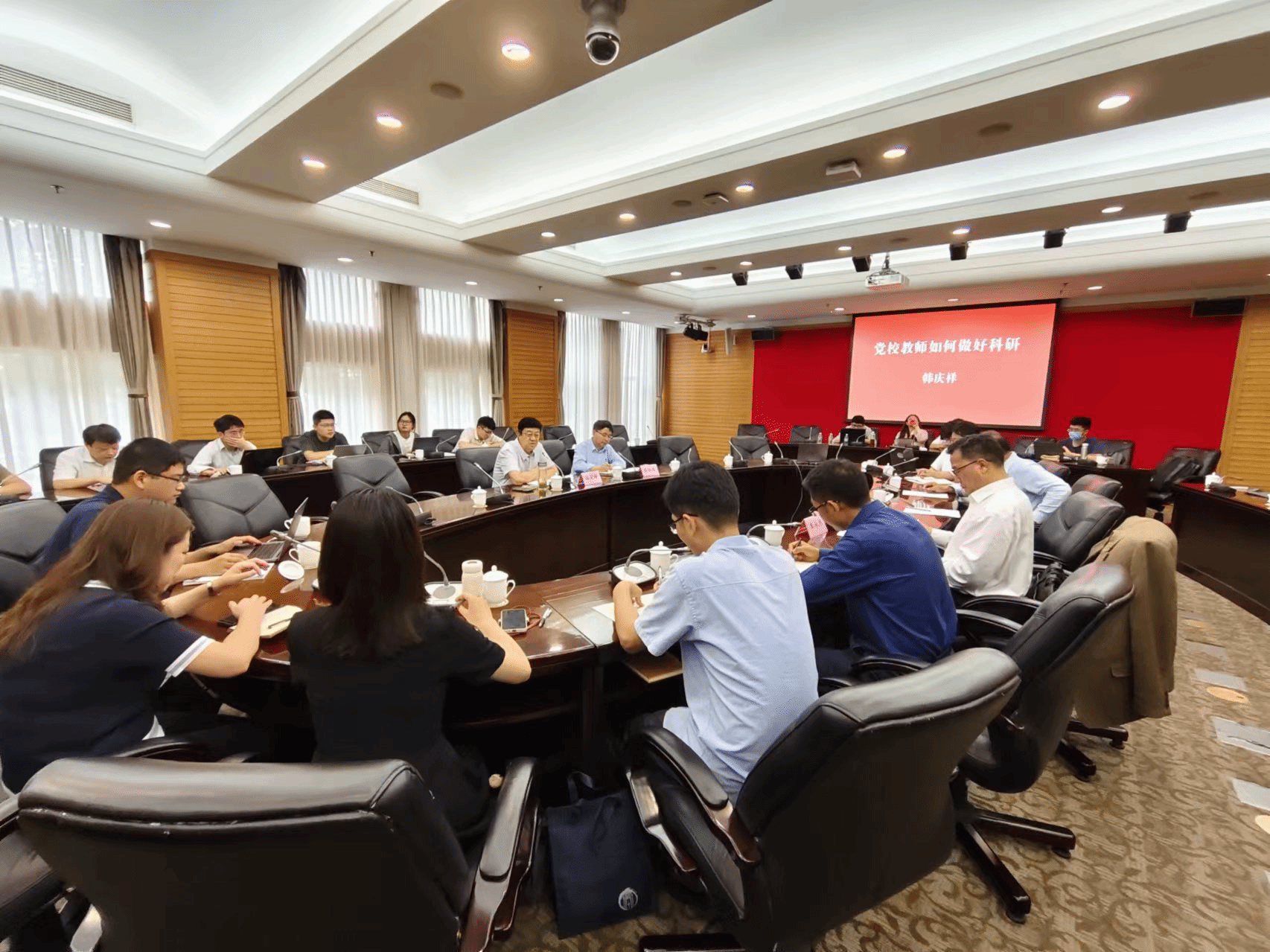 韩庆祥教授从坚持问题导向、形成分析框架、提出创新观点、做好逻辑论证、注重学术表达等十个方面,对党校教师如何做好科研工作进行了深入解读和具体指导。来自市委党校马克思主义理论学科方向和三大聚焦领域的教师和在校研究生,以及上海市马克思主义研究会的部分学者共计50余人参加讲座。