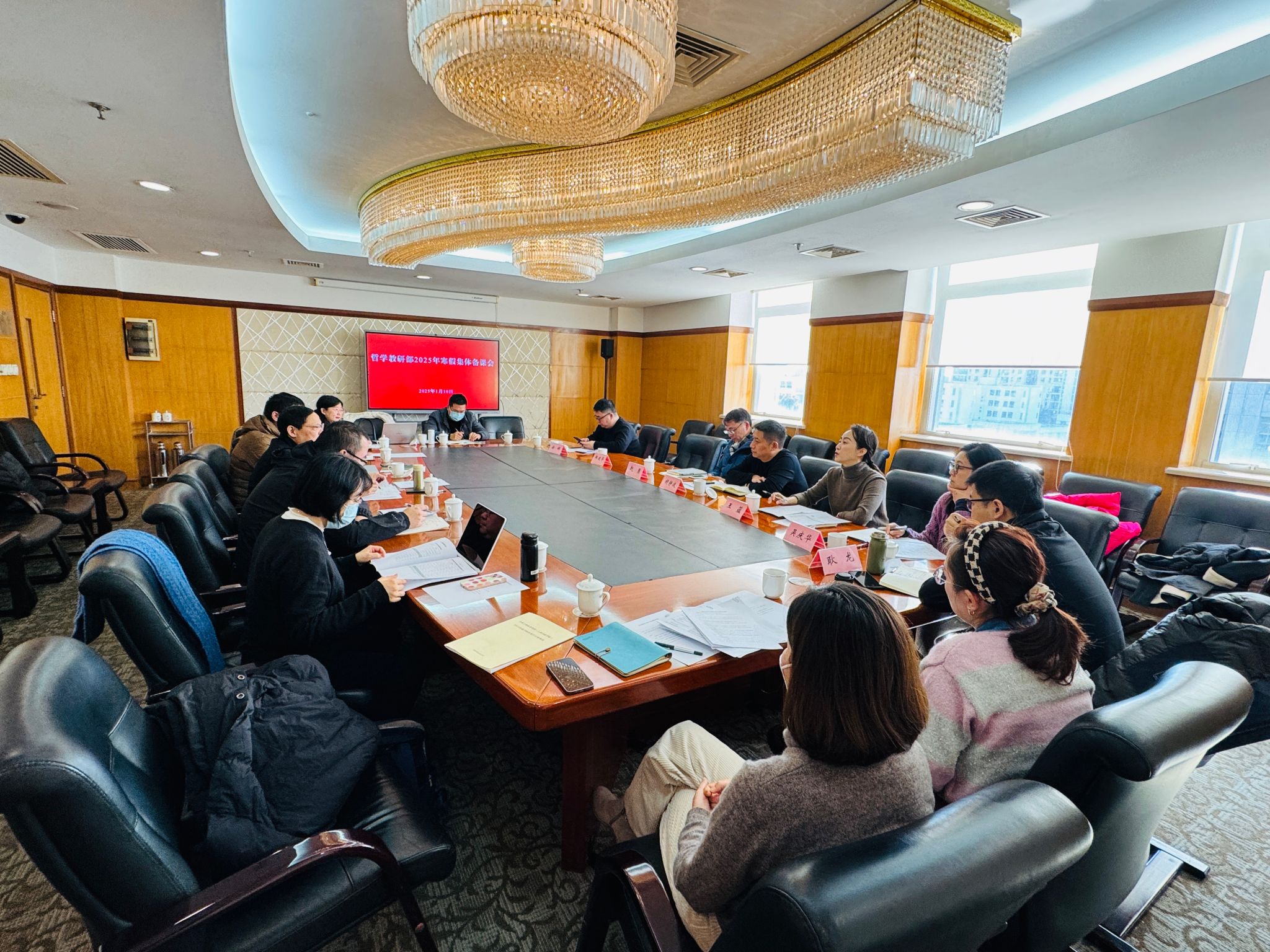 1月10日上午,哲学教研部举办2025年寒假集体备课会。哲学教研部主任陈胜云教授主持,教务处、科研处、决咨部、公务员培训处等相关部门负责人,黄力之教授、袁秉达教授及哲学教研部全体教师参加备课会。