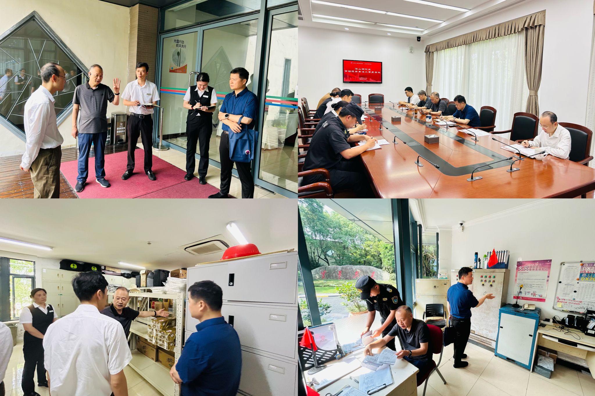 考核小组先后对两个校区的监控中心、安保门岗、水泵房、高配间、地下车库、学员宿舍,以及学员餐厅等重点部位进行了认真检查,并召开校区常驻服务单位第二季度服务工作情况通报会议。采取“听汇报+评实效”的方式,分别对物业、餐饮、安保等服务项目,按照考核标准进行严格考评。上勤楼宇、上海宗保、徐汇园林、大观园园林等相关单位负责人,分别对第二季度的工作进行汇报总结。