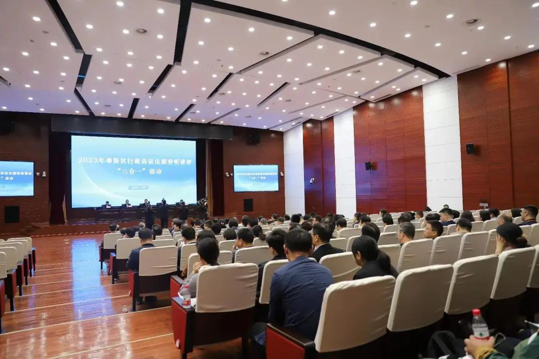 本网讯 11月7日上午,奉贤区2023年行政诉讼出庭、旁听、讲评“三合一”活动在闵行区人民法院奉贤巡回审判点举行。奉贤区委副书记、区长王益群出庭应诉,并在随后召开的讲评会上讲话。奉贤区第28期区管干部进修班全体学员参加活动。