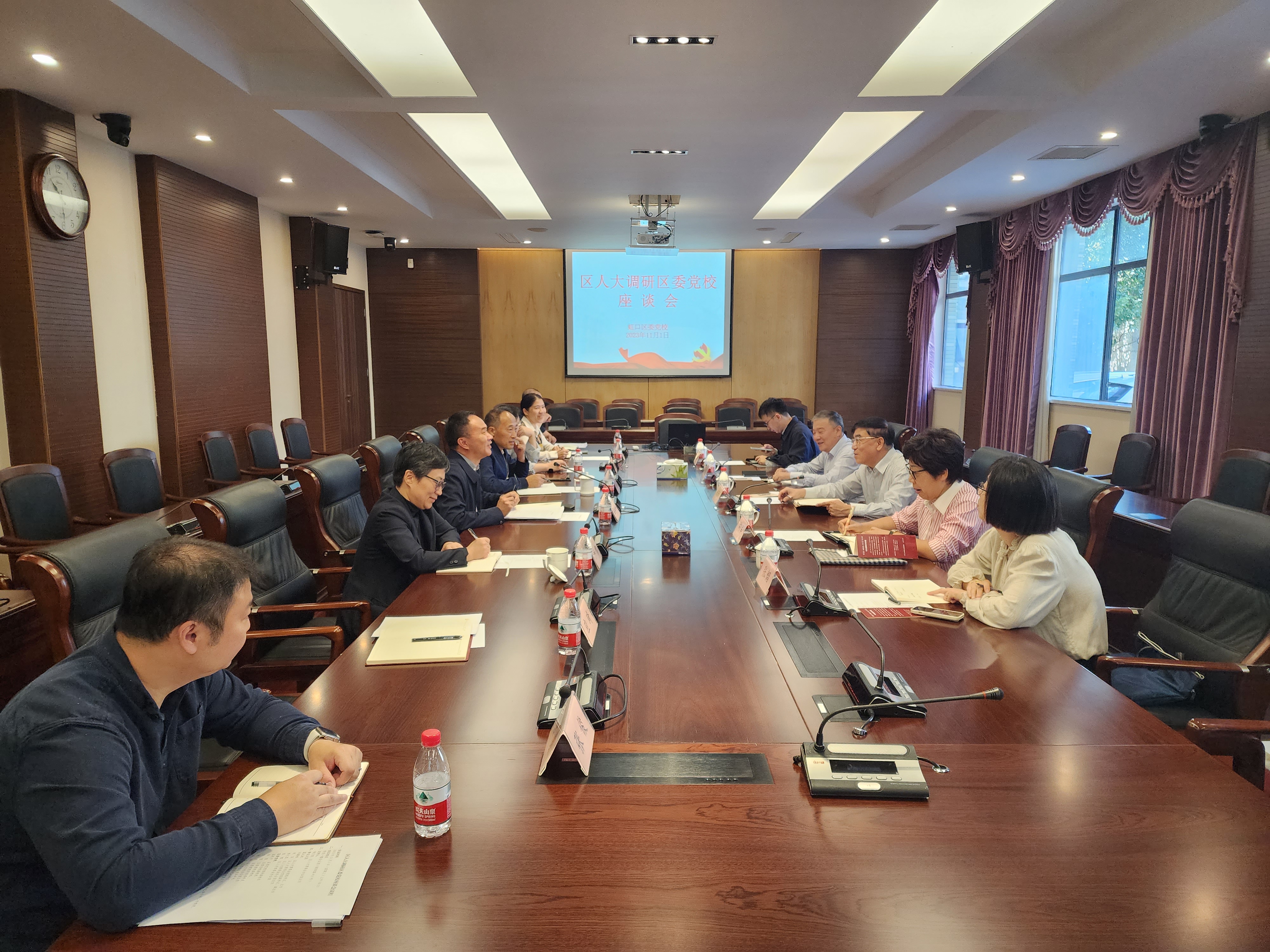 座谈会上,朱勤皓一行听取了区委党校关于虹口区干部教育培训、课程开发以及课题研究情况的汇报。与会人员针对“全过程人民民主”进课程、名师培养、决策咨询及培训保障等方面问题展开交流。